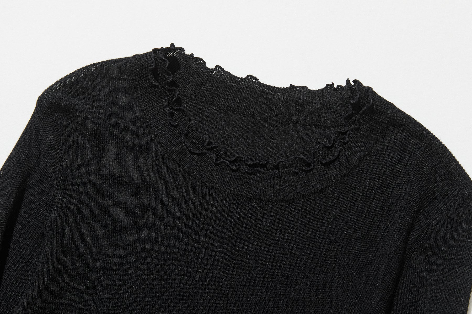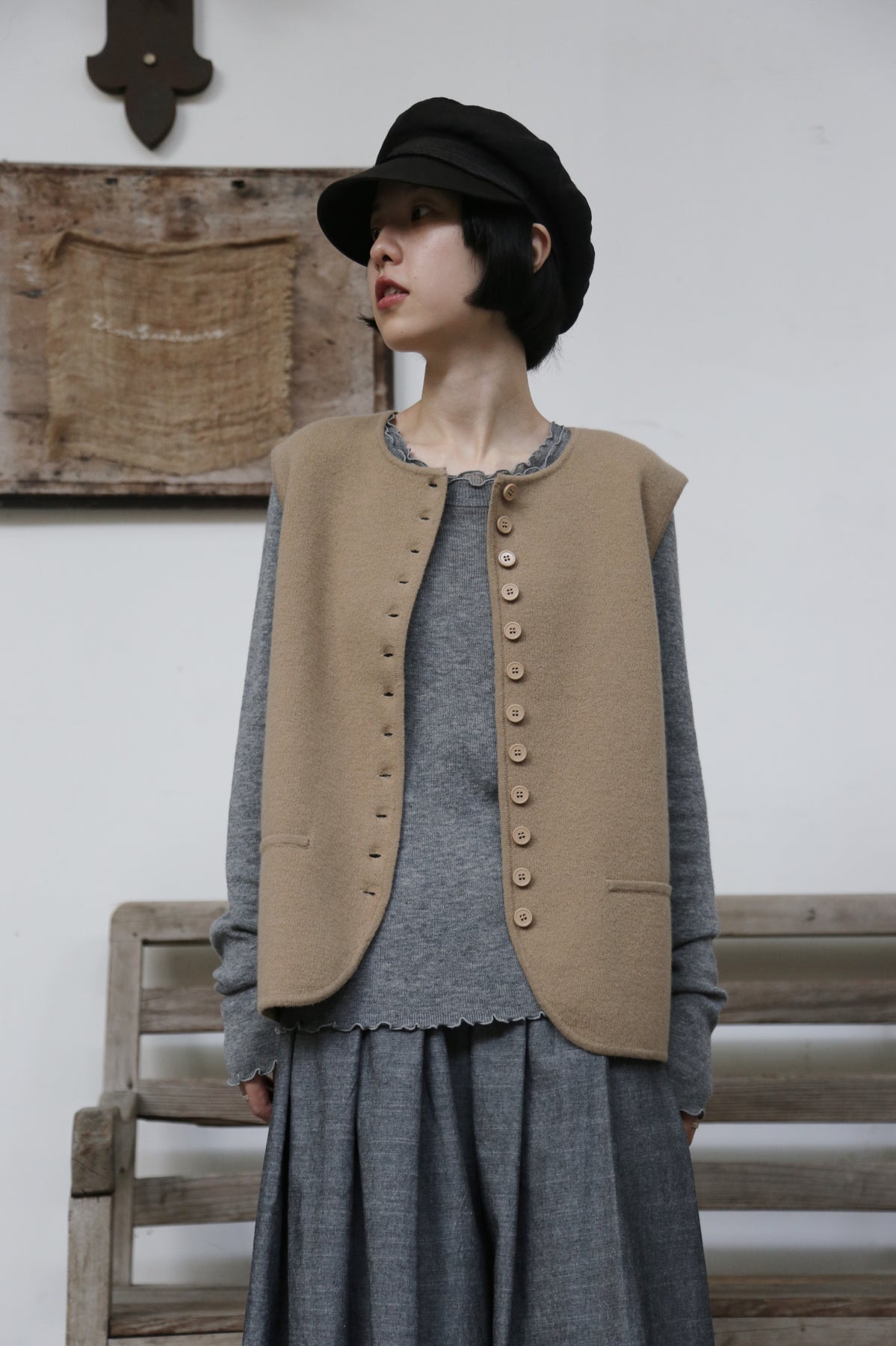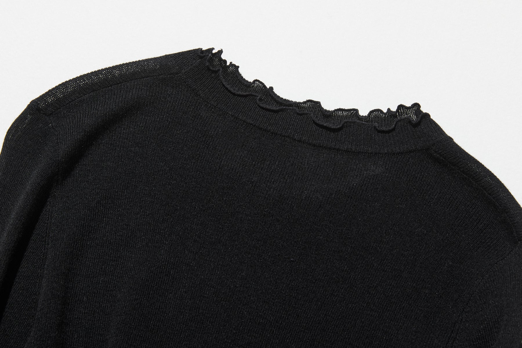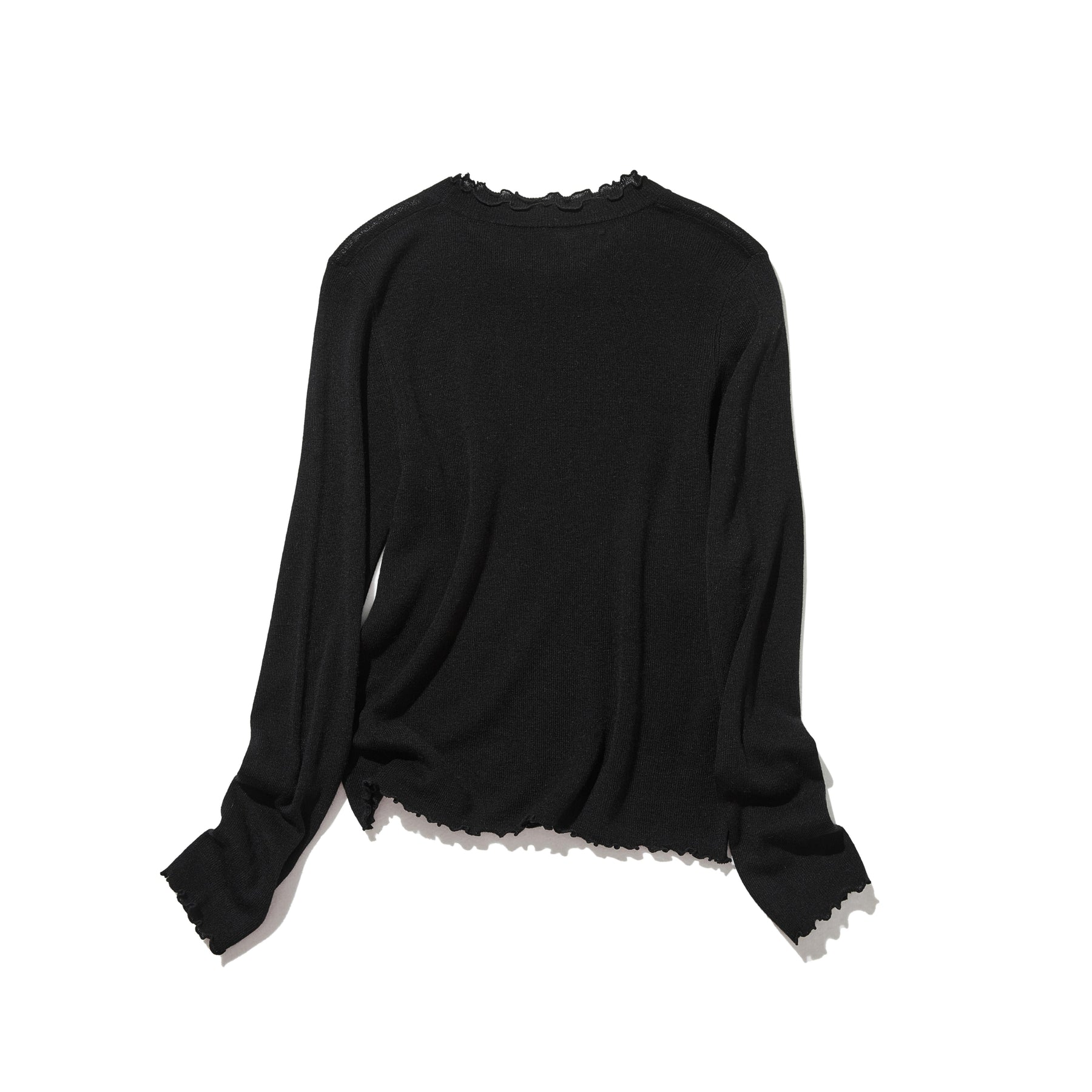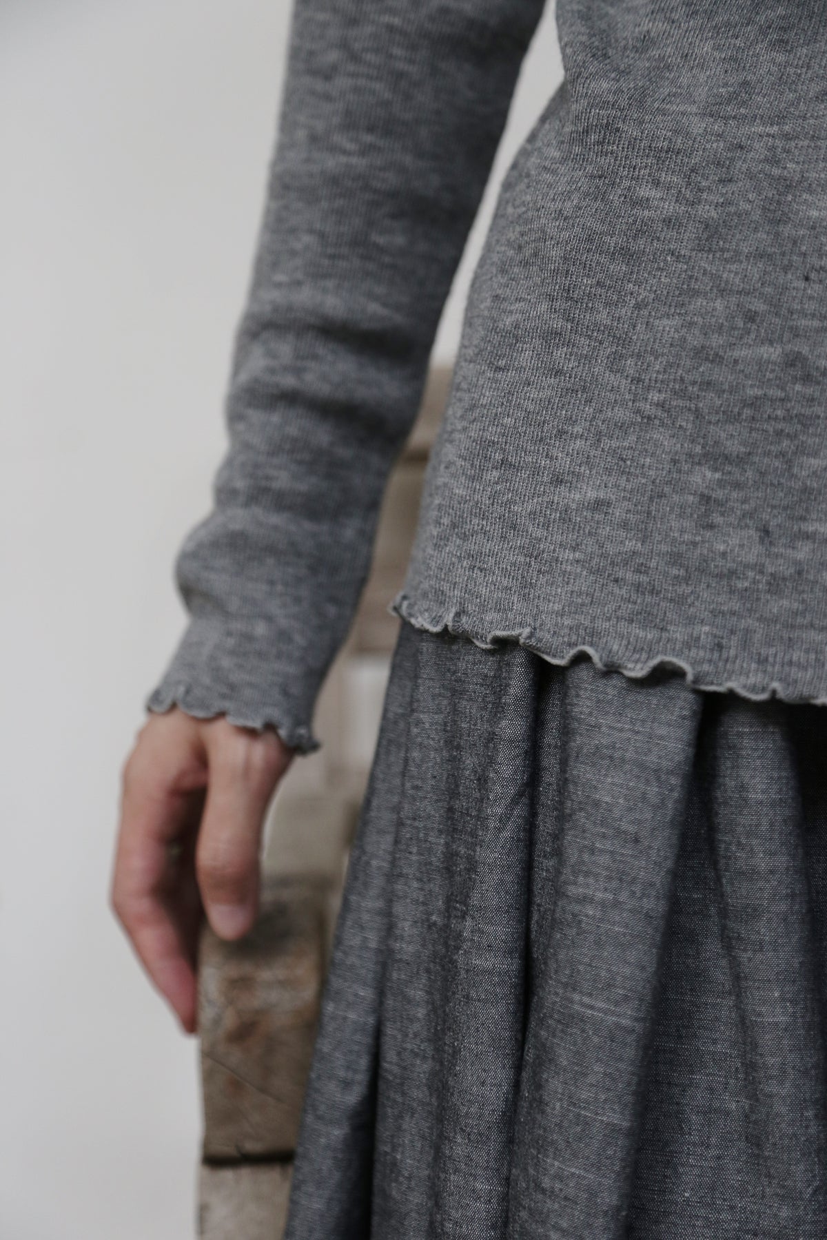 すっきり女性らしいシルエット。肌に寄り添う、軽くて暖かなハイゲージニット 251102こちらのプルオーバーは、女性らしいラインを描きながらも、きつすぎない絶妙なフィット感が魅力のリブニット。高品質なウール混糸を使用し、肌にチクチクしない、なめらかな肌触りに仕上げました。【商品の特徴】• 心地よいフィット感: 細かいリブ編みが身体に優しく寄り添い、美しいシルエットを演出します。適度な伸縮性で動きやすく、Lサイズの方まで快適にお召しいただけます。• 軽暖・快適素材: あたたかみのあるウール混糸を使用。軽くてやや薄手のため、季節を問わず活躍します。• こだわりのディテール: やや開きの広いクルーネックで首元をすっきり見せ、袖口と裾には可愛らしいピコデザインをあしらいました。【こんな方におすすめです】• すっきりと体にフィットするシルエットがお好きな方• チクチクせず、軽くて動きやすいニットをお探しの方• インナーにもメインにもなる、汎用性の高いアイテムが欲しい方◎ スタイリングアドバイス• シンプルに… ベーシックなデニムやスラックスに合わせて、すっきりカジュアルに。クルーネックが差し色のネックレスを引き立てます。• レイヤードに… シャツやブラウスの上から着れば、襟元と袖口から覗くピコデザインがアクセントに。オフィスカジュアルにもおすすめです。• アウターのインナーに… ジャケットやコートの下にすっきり収まるので、冬の定番インナーとして重宝します。リバーシブルコートと合わせれば、表裏で雰囲気が変えられてより便利です。素材:ウール32.8%ポリエステル43.6%アクリル23.6%サイズ:身丈60cm肩幅38cm袖丈64cm首回り56cmバスト80〜100cm(伸縮性あり)裾80〜100cm透け感:なし裏地:なしポケット:なし伸縮性:あり光沢感:なしシーズン:春、秋、冬