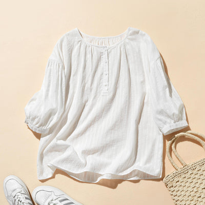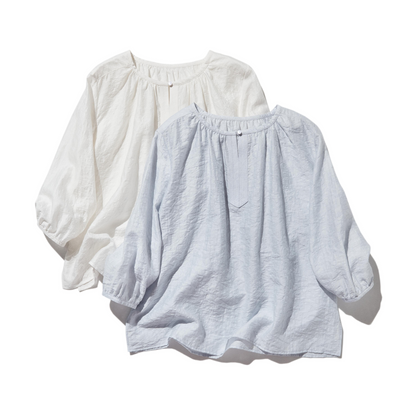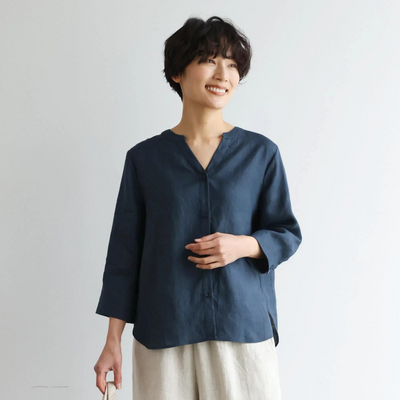 「きちんと感」と「リラックス感」の絶妙なバランス 7分袖ブラウス 麻100% 250604