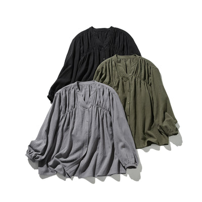 ふんわりAラインが可愛い! 風通し良く夏らしい麻ブラウス ピンタック入りブラウス 250422
