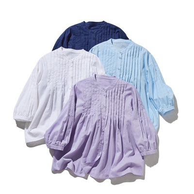 表情を豊かに魅せてくれるピンタック入りブラウス 7分袖 コットンリネン 250425
