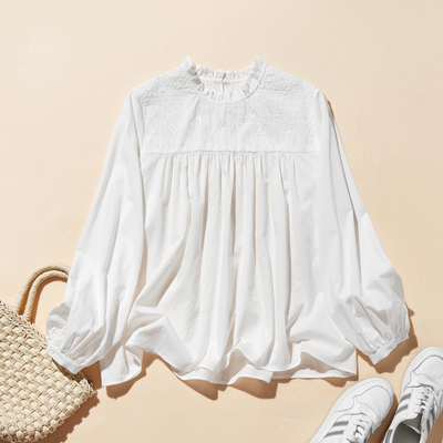 季節を超えて活躍する大人カジュアルな一枚 刺繍生地 長袖ブラウス 薄手 コットン 250504-1