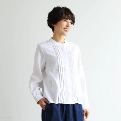 様々なシーンで活躍する万能アイテム ピンタック入り リネンシャツブラウス 250412