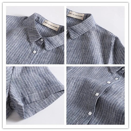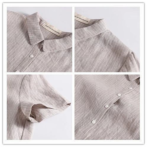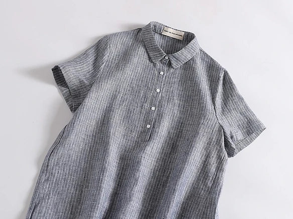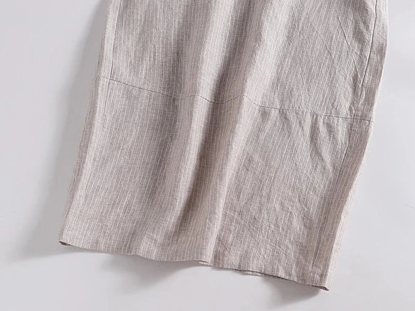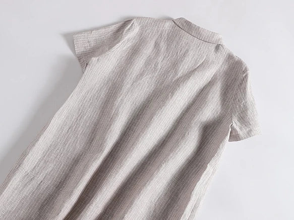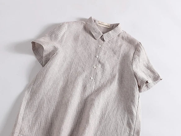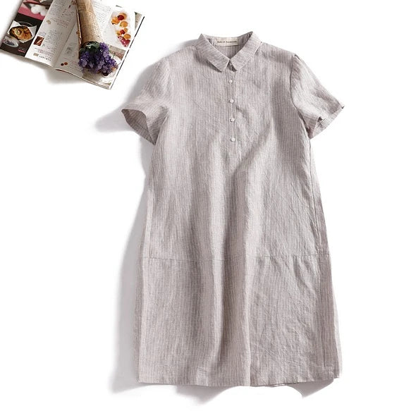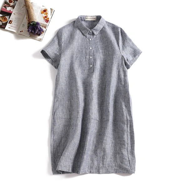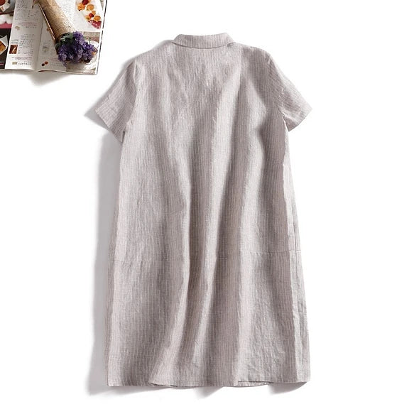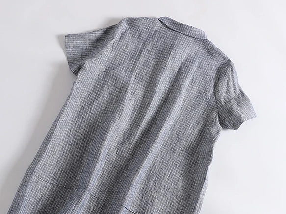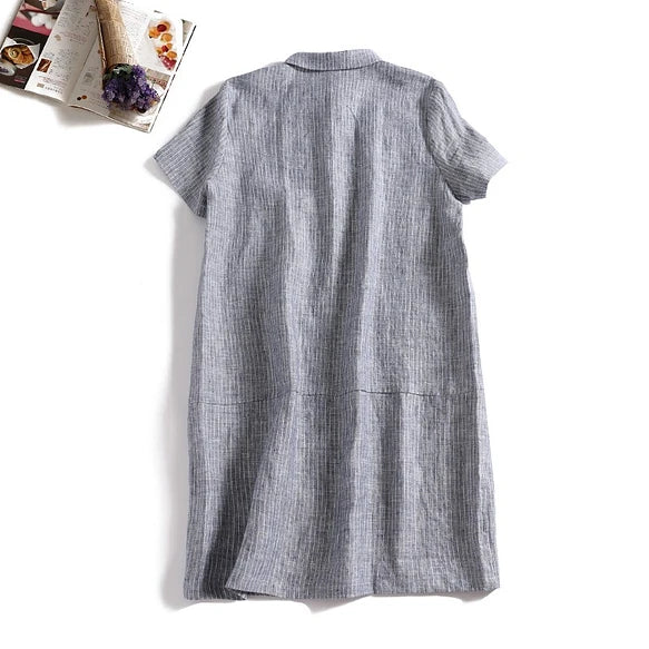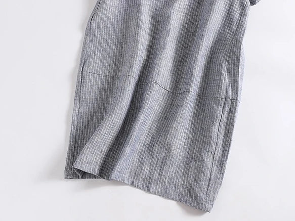 越穿越愛的條紋連身裙,短袖,100% 亞麻 190709