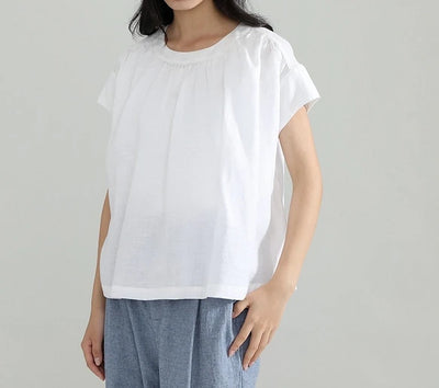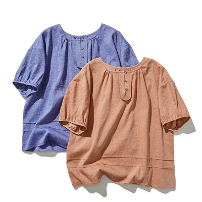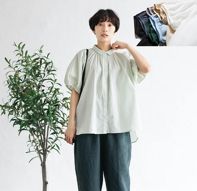 享受穿著 Yoke switch 縮褶襯衫女襯衫 100% 亞麻 220203-1