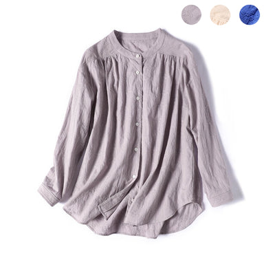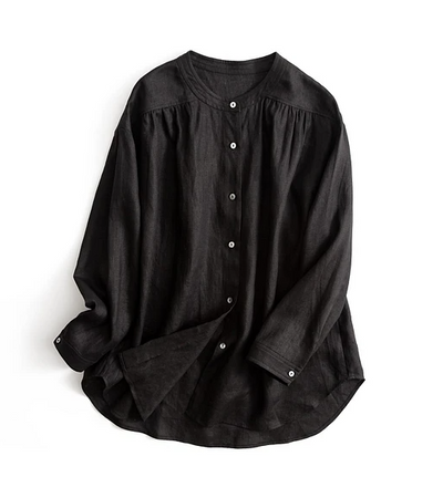 ゆったりとしたシルエットでありながら、きちんと感のあるブラウス 長袖ブラウス 綿麻 251004-1