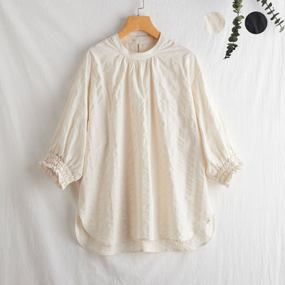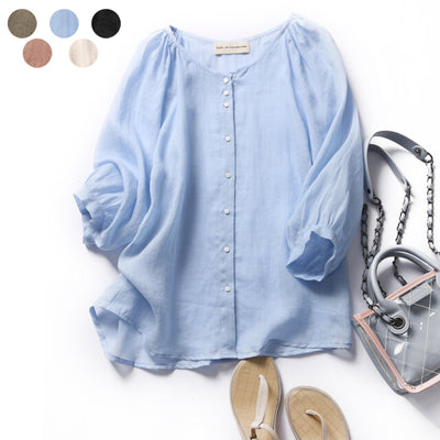 簡單易混搭亞麻襯衫上衣 3/4 袖 80517