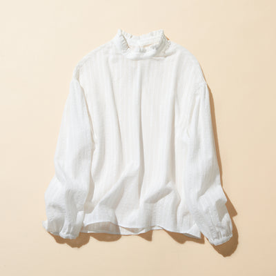 吸引成年女孩魅力的褶邊領襯衫,長袖襯衫,提花編織,100% 純棉 230202-1