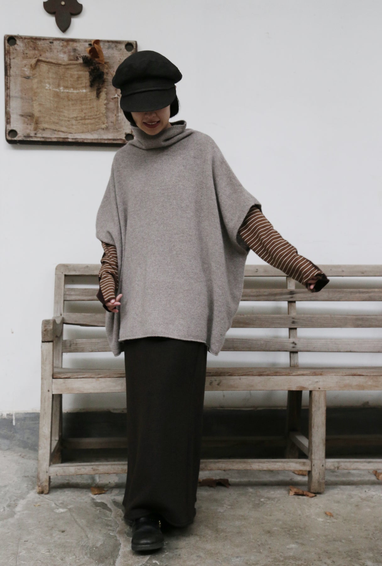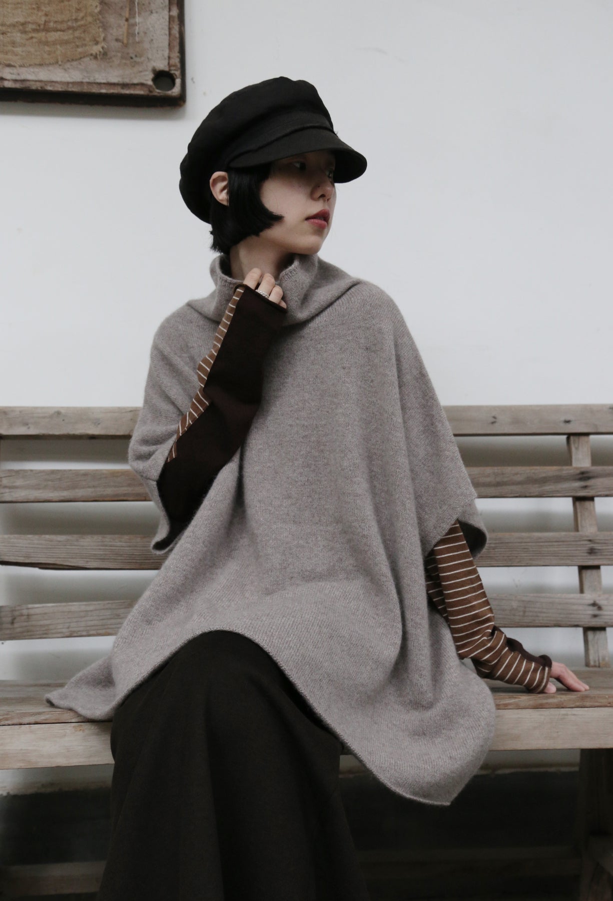 上質な温もりと自由なスタイリングを演出 ウールセーター ケープ風ニット カシミヤセーター 251125