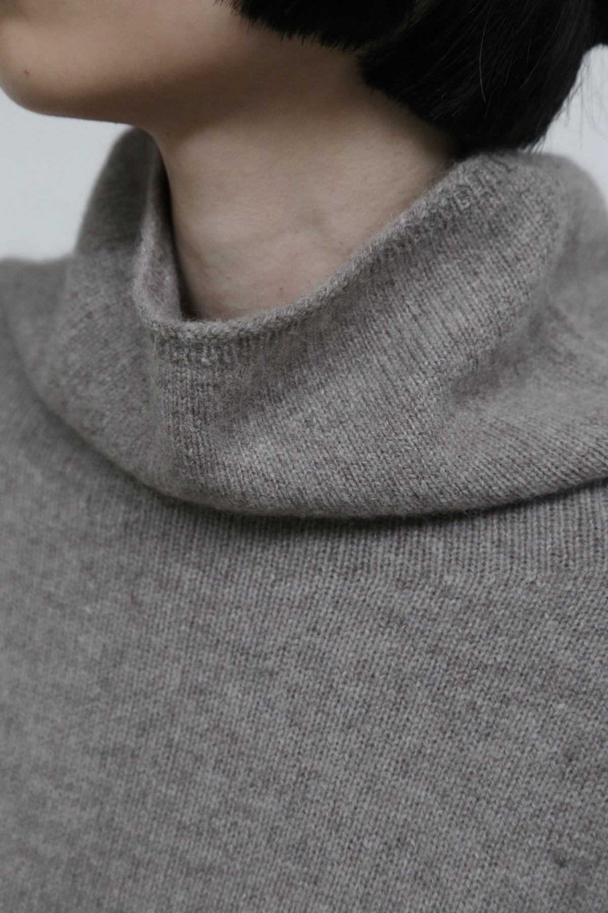 一番の特徴は、首元を締めつけない「くしゅっとしたハイネック」。ボリューム感のある首元は、お顔まわりを優しく包み、シンプルでありながらも存在感を発揮します。