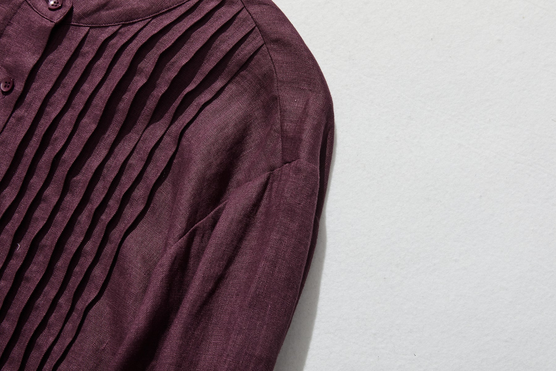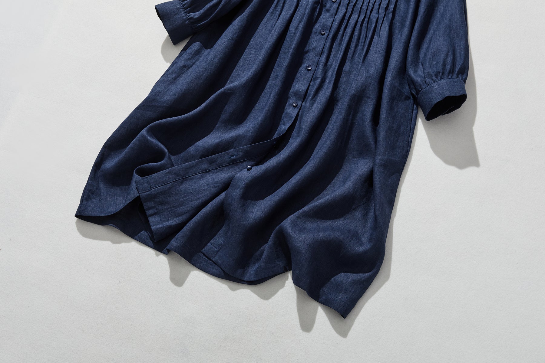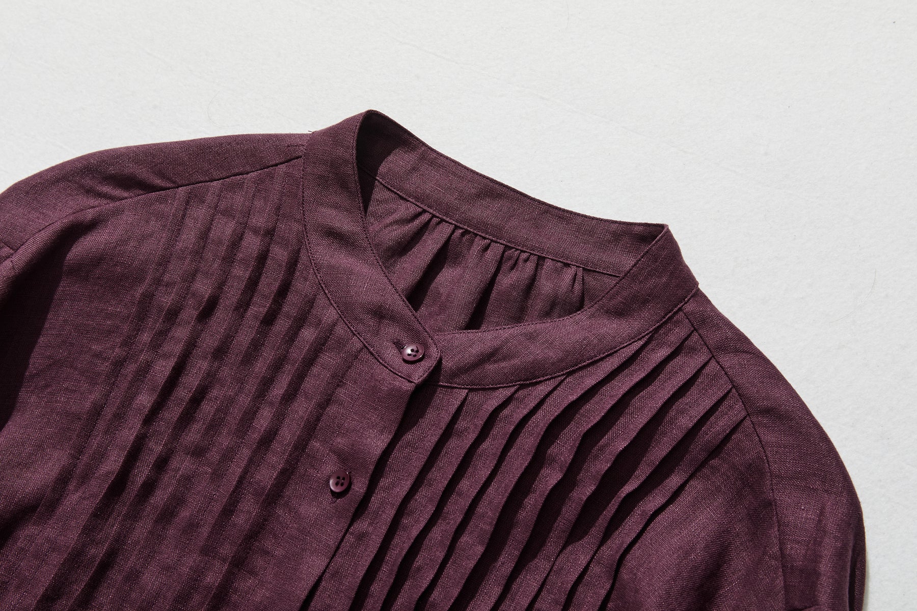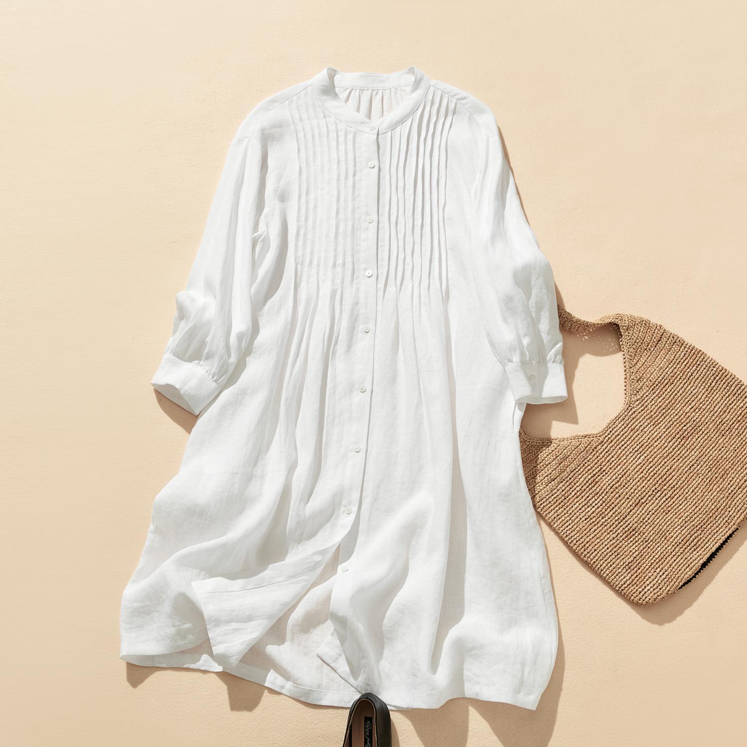 100% 亞麻襯衫裙,附針褶,適合所有季節 240318