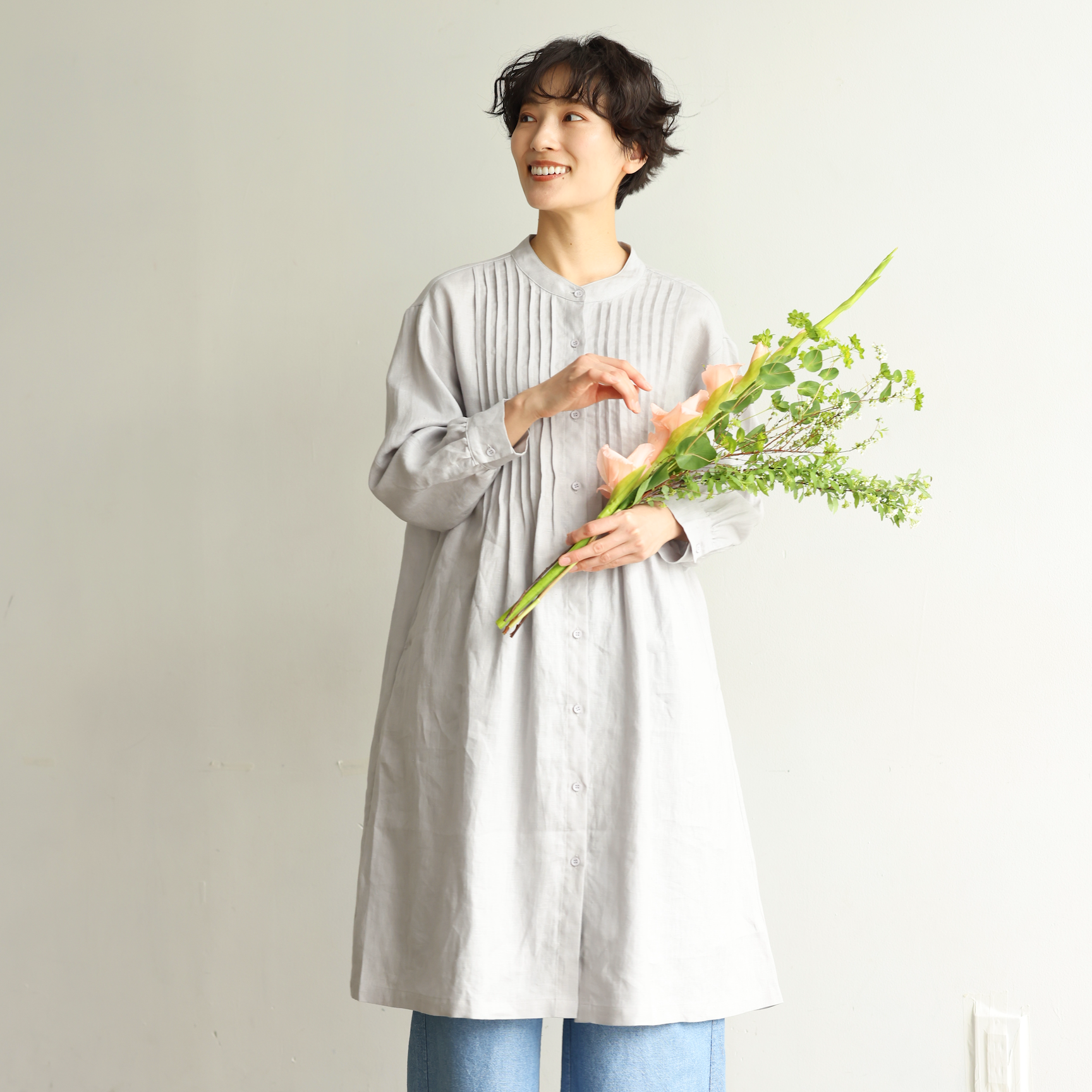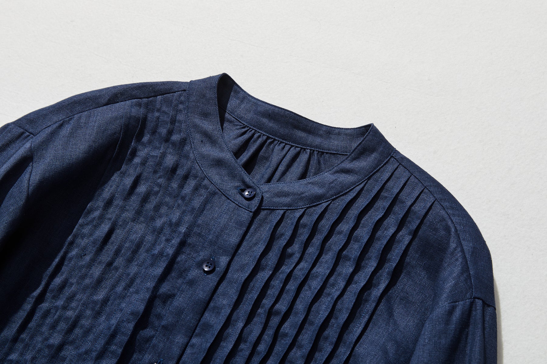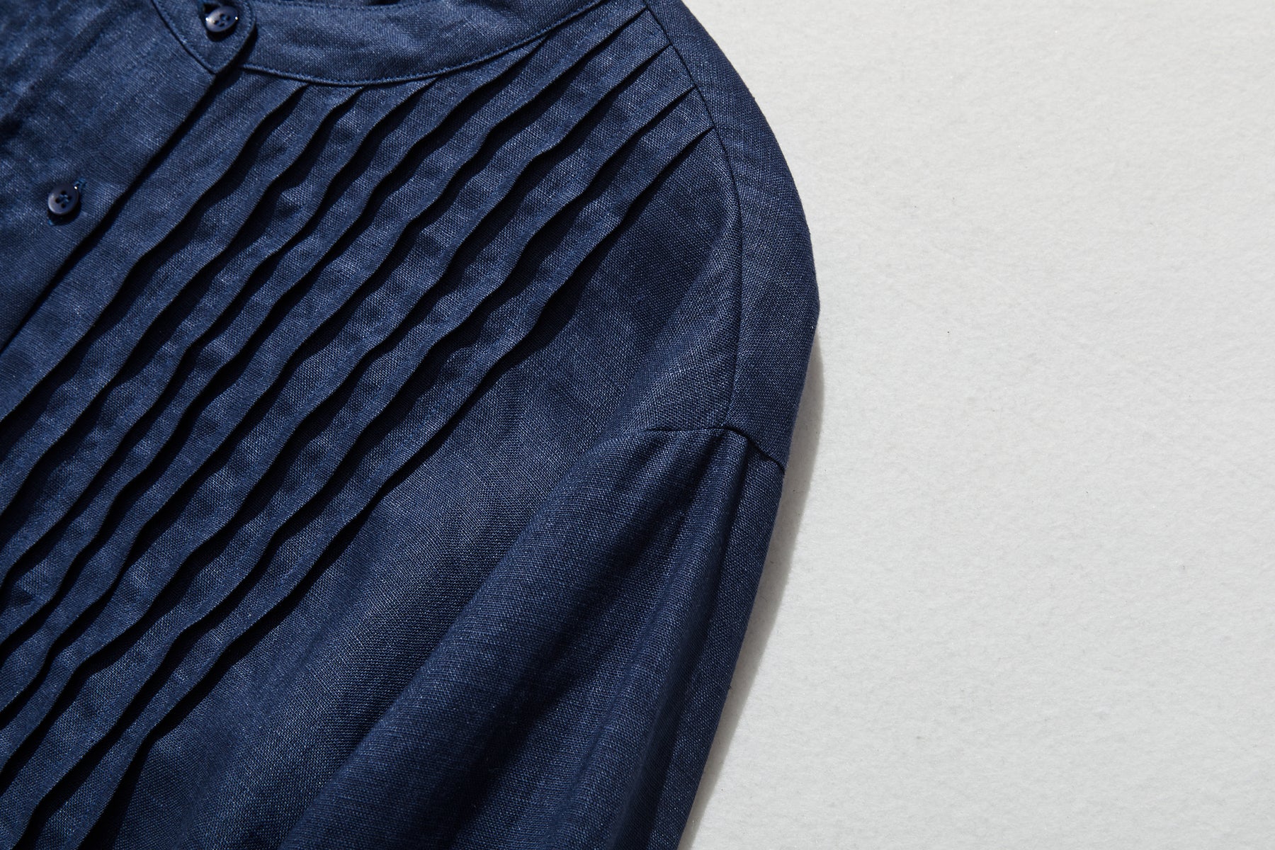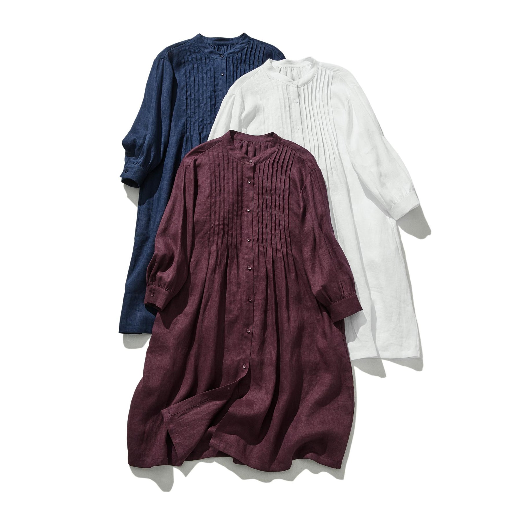 100% 亞麻襯衫裙,附針褶,適合所有季節 240318