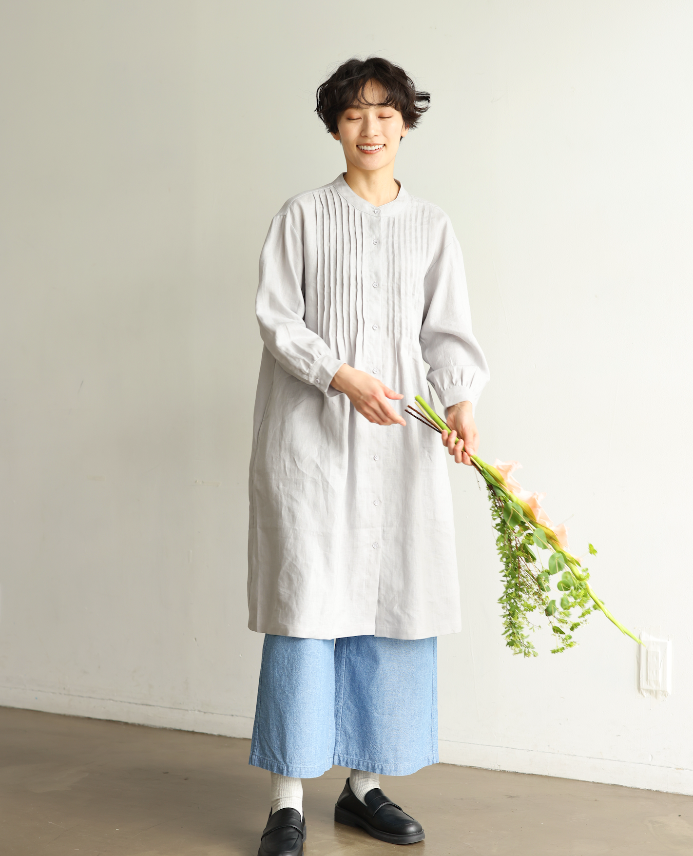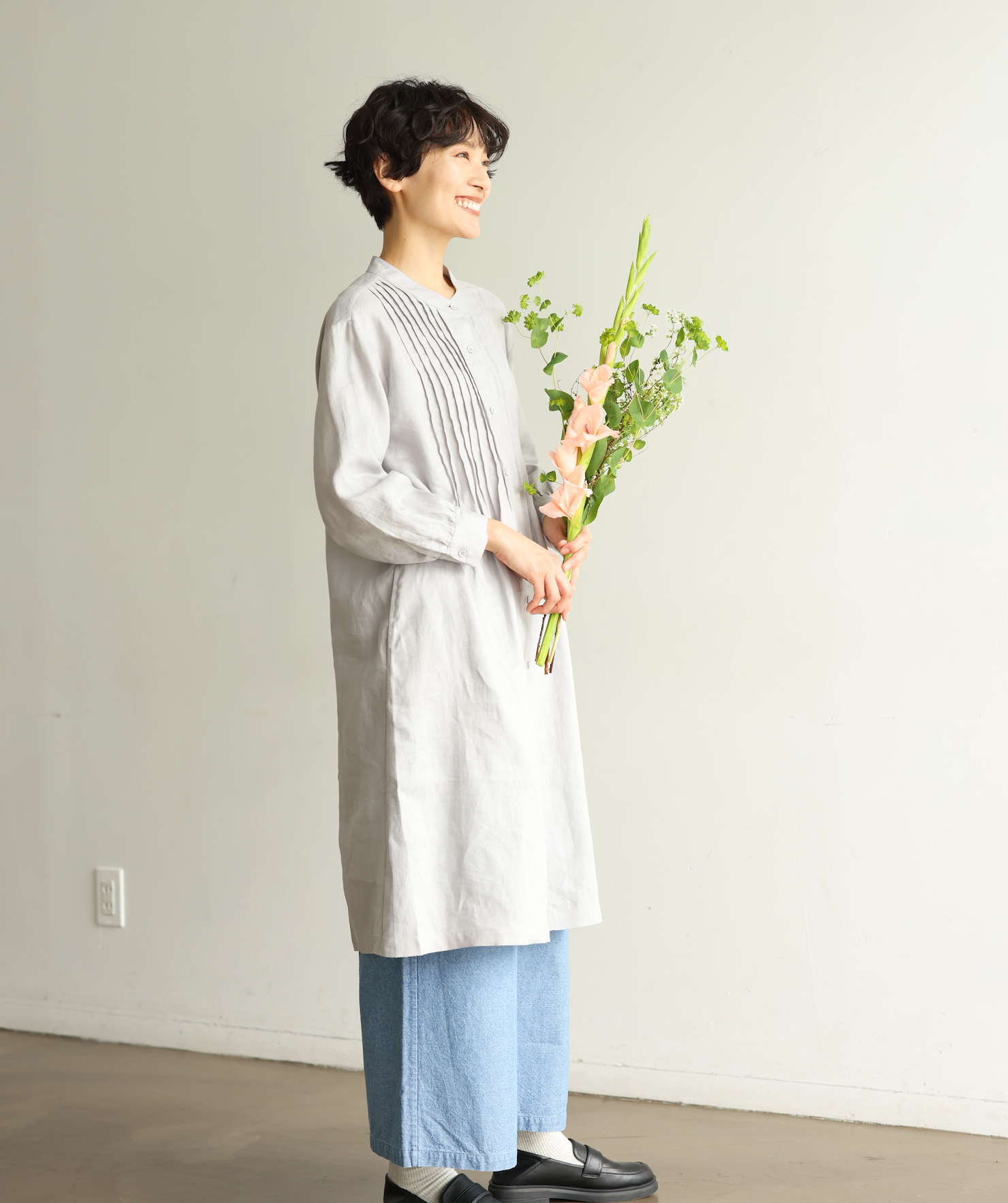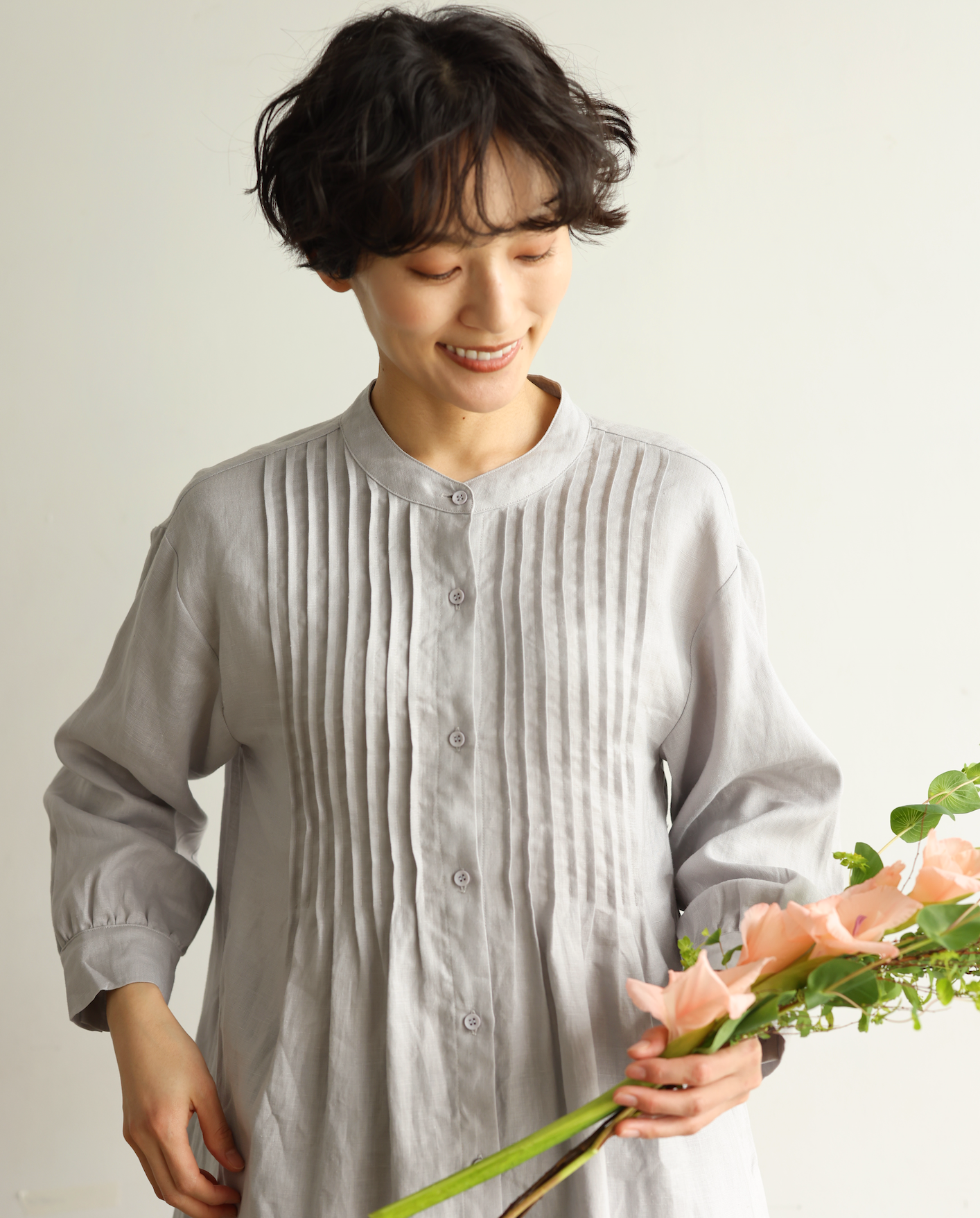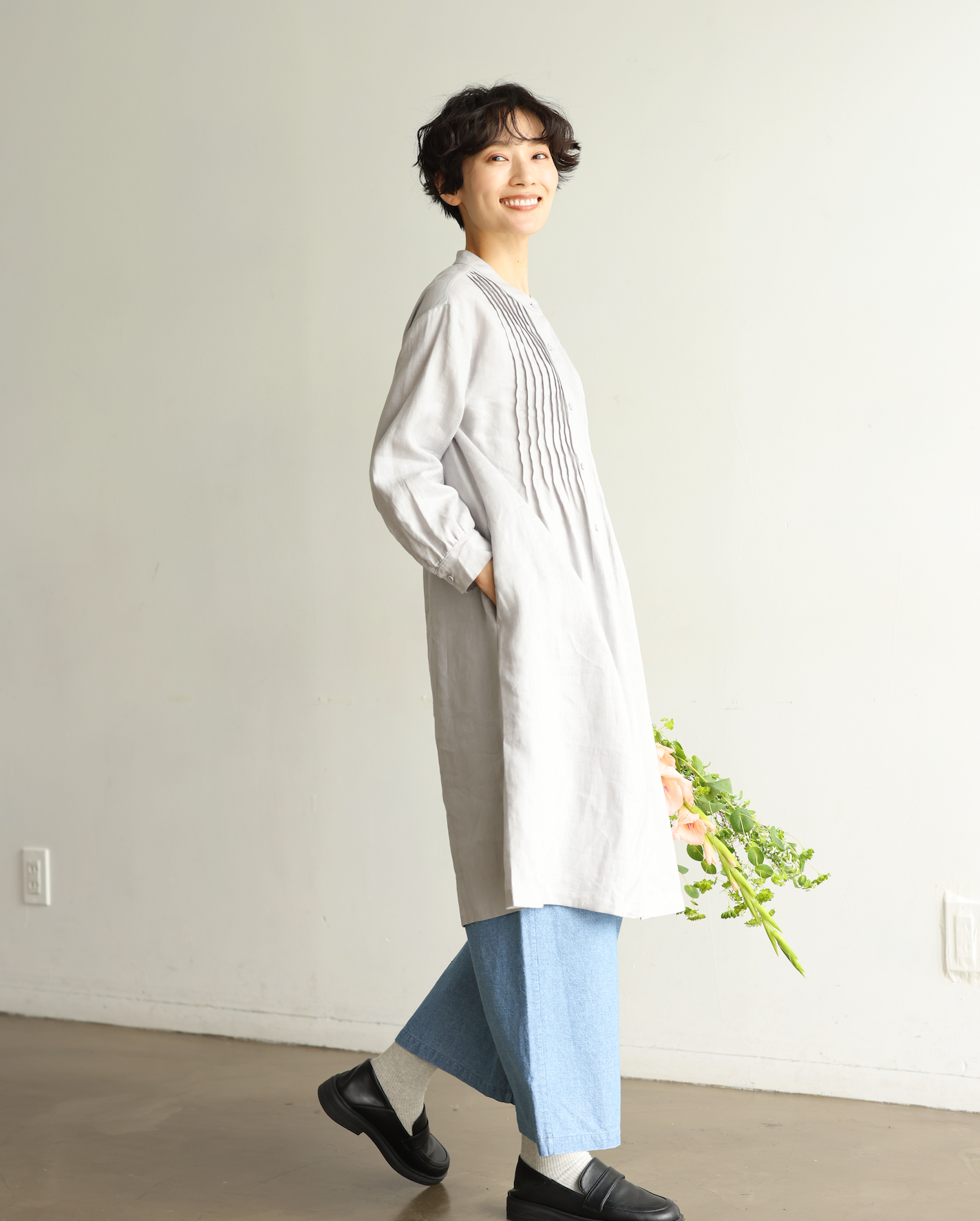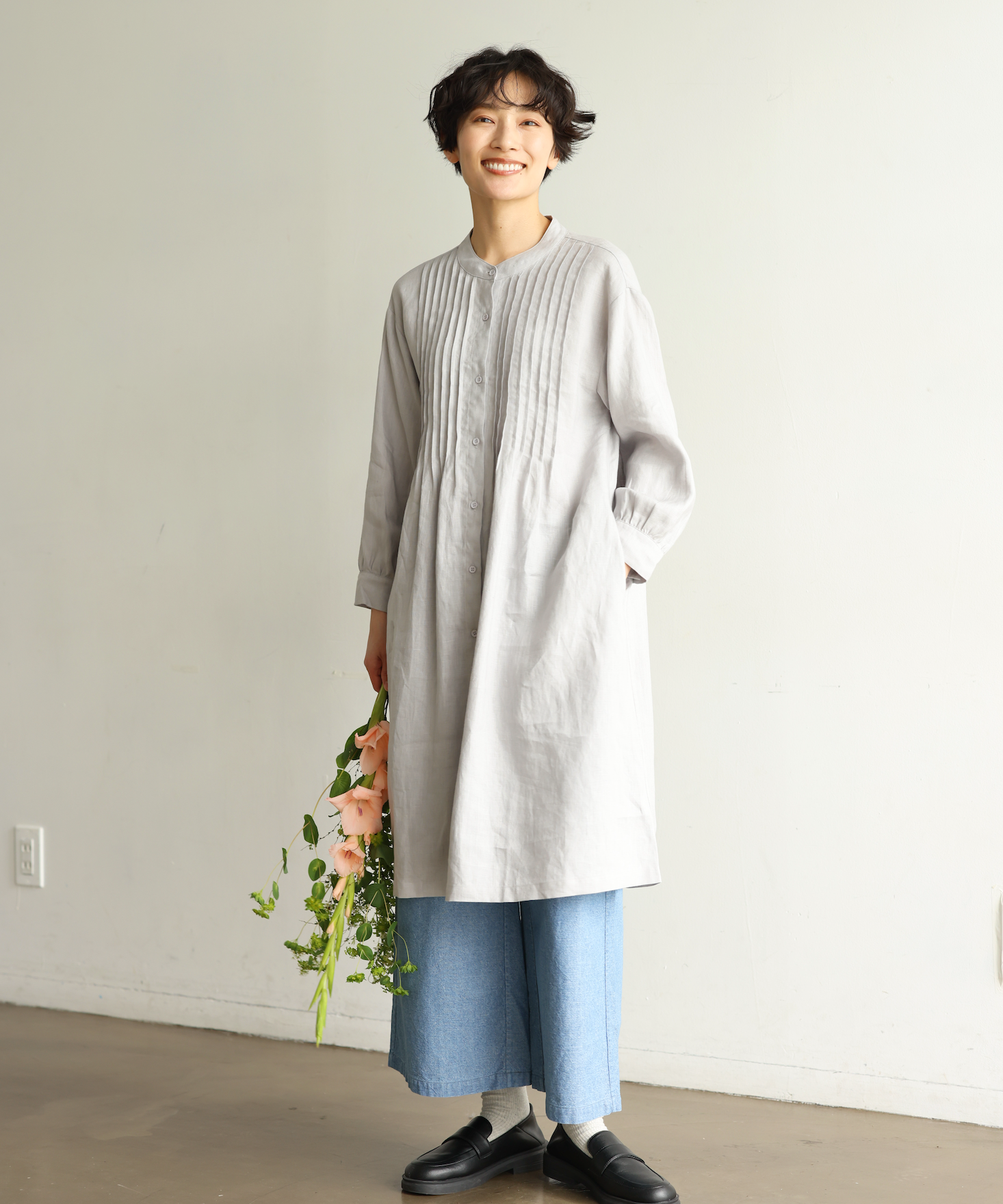 100% 亞麻襯衫裙,附針褶,適合所有季節 240318