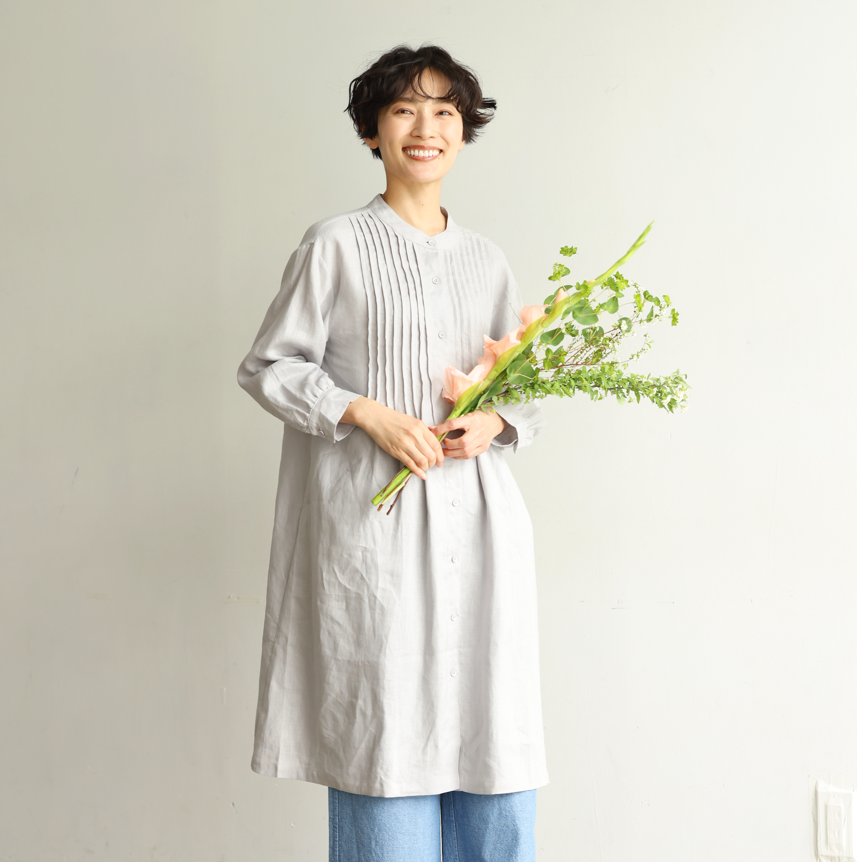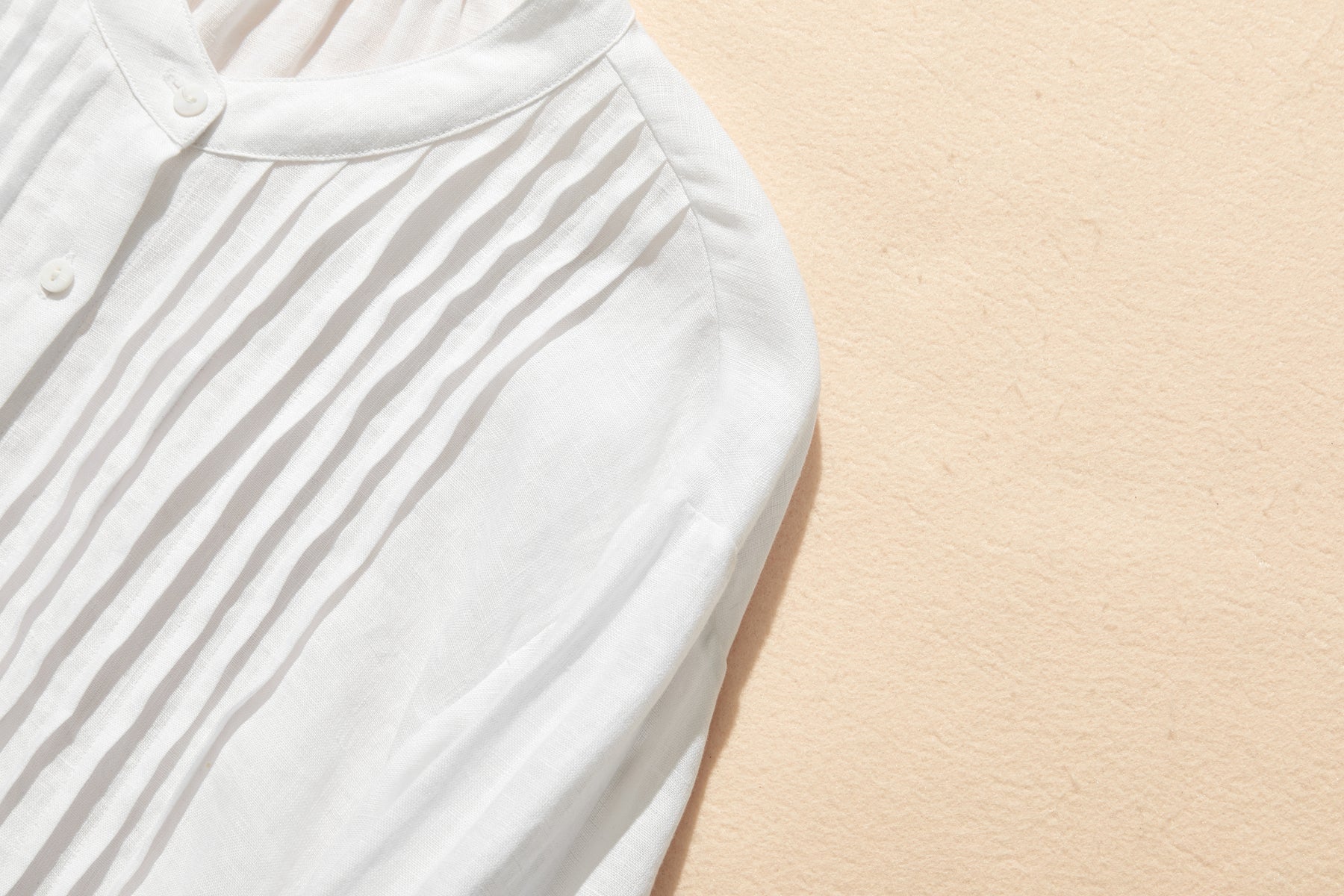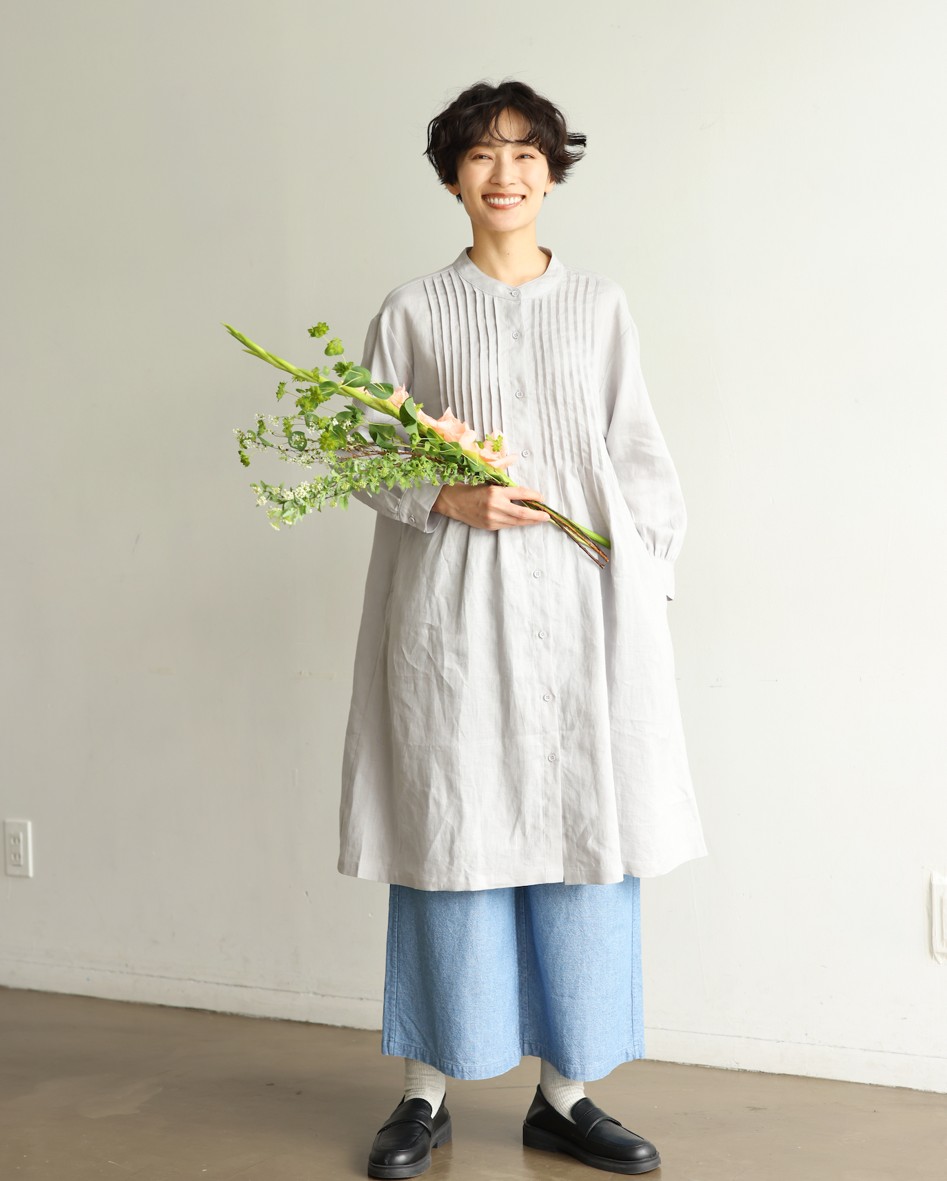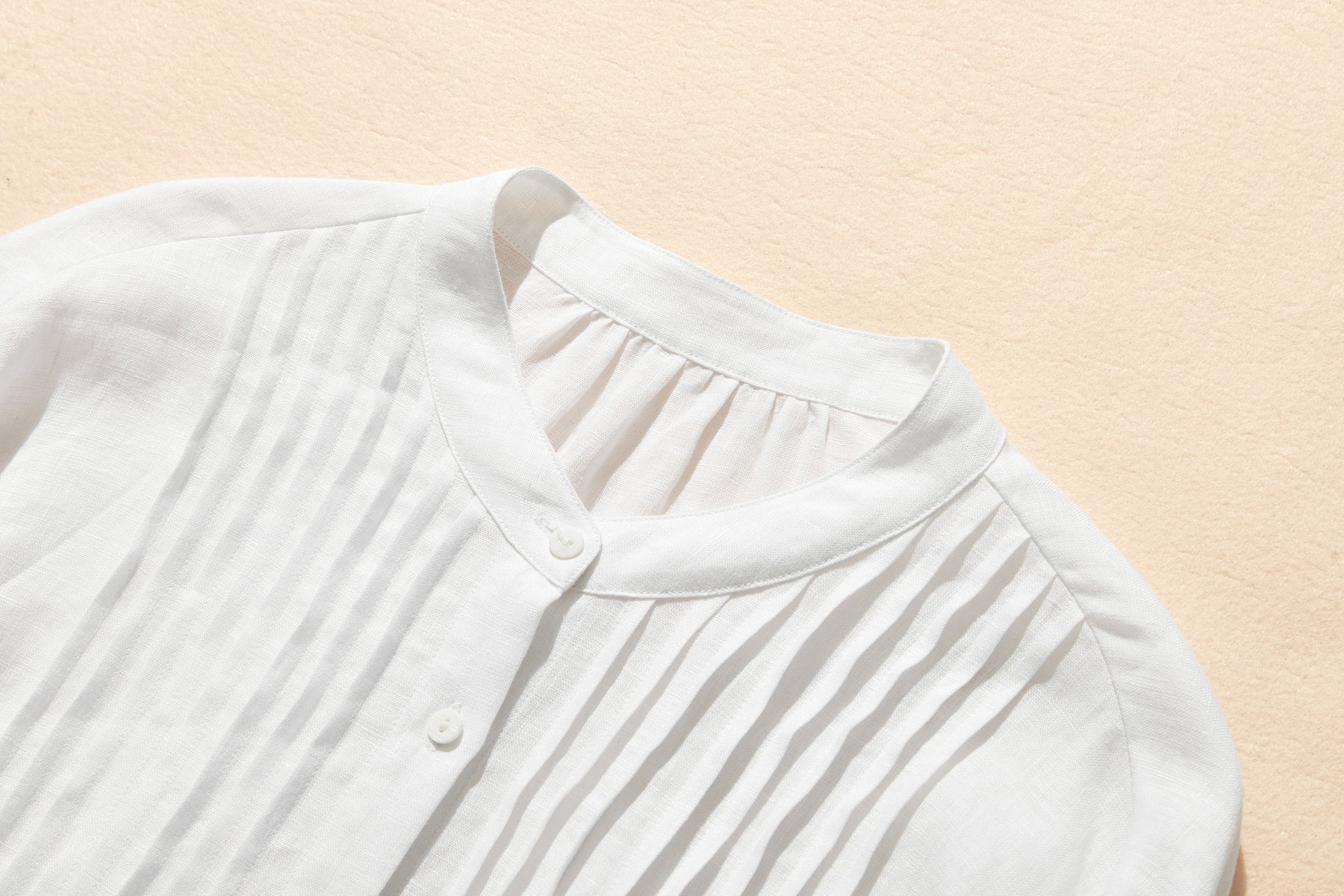 100% 亞麻襯衫裙,附針褶,適合所有季節 240318