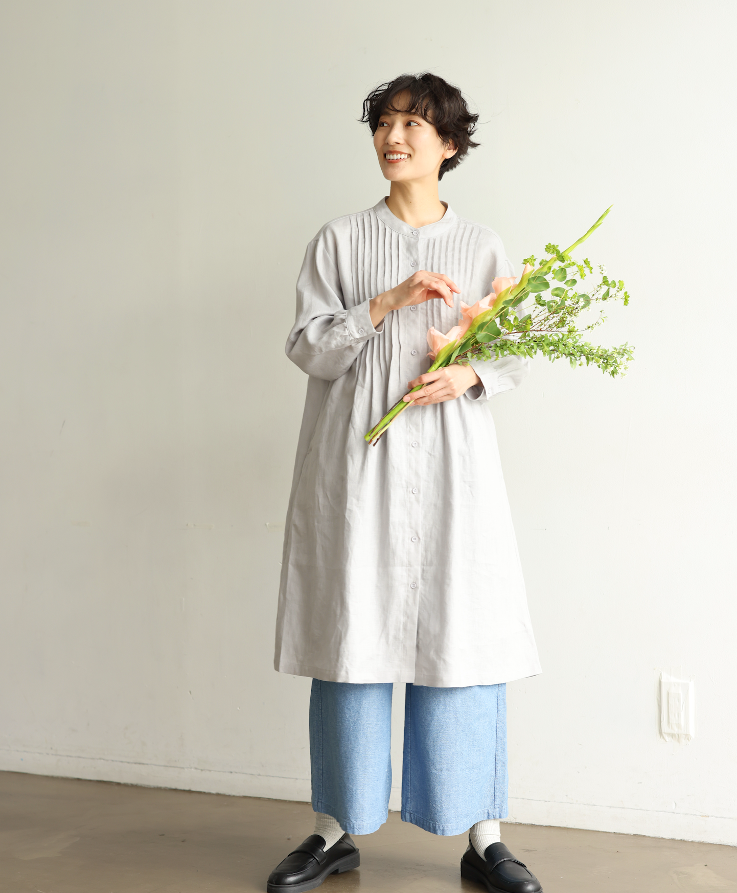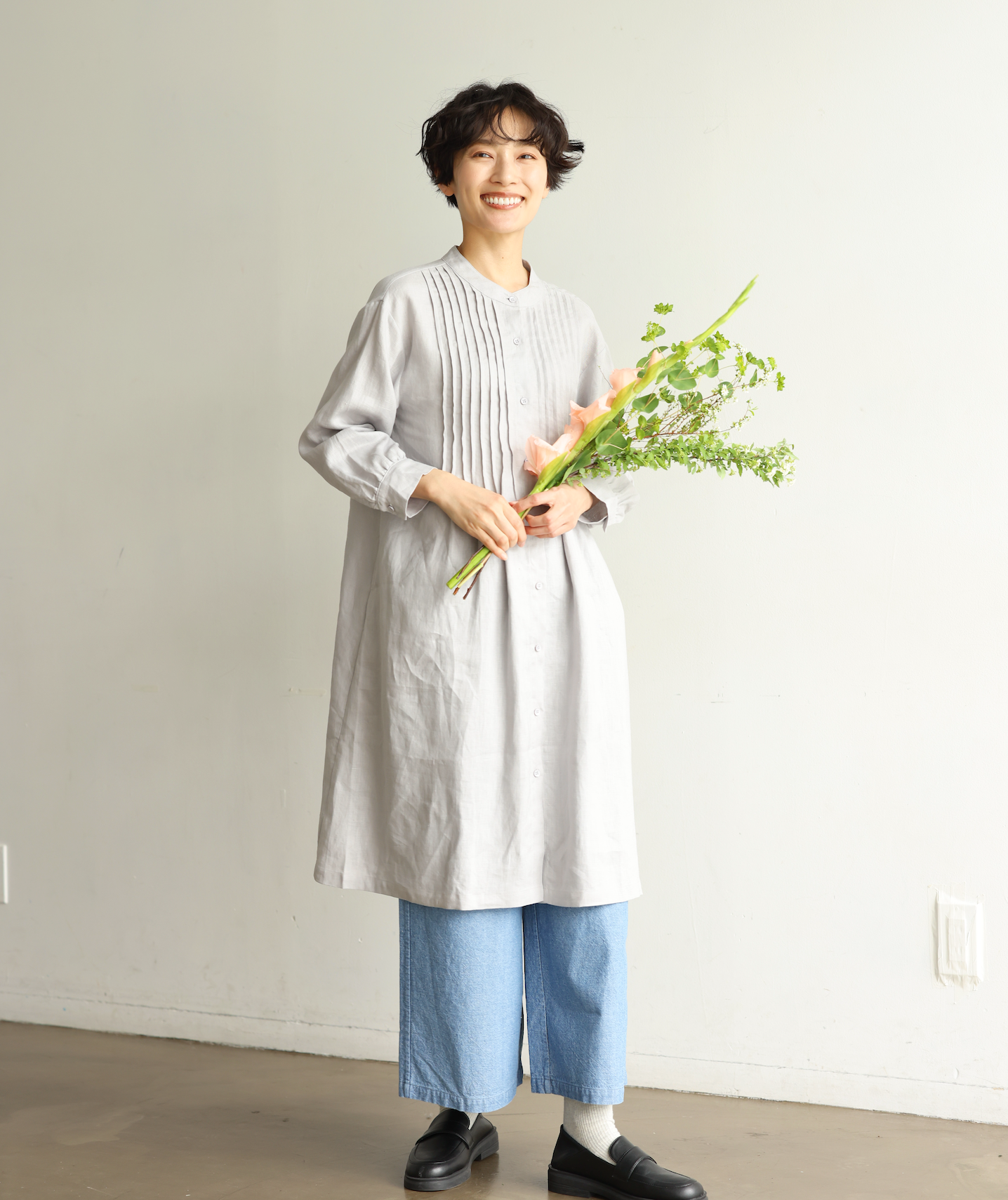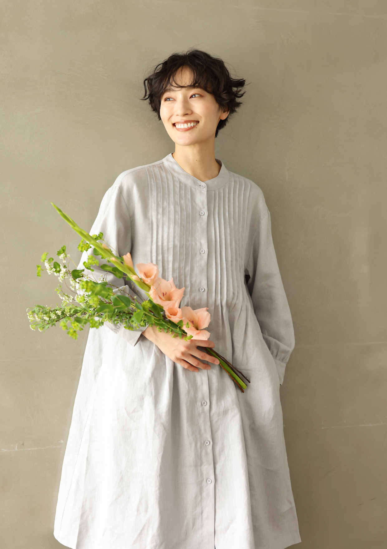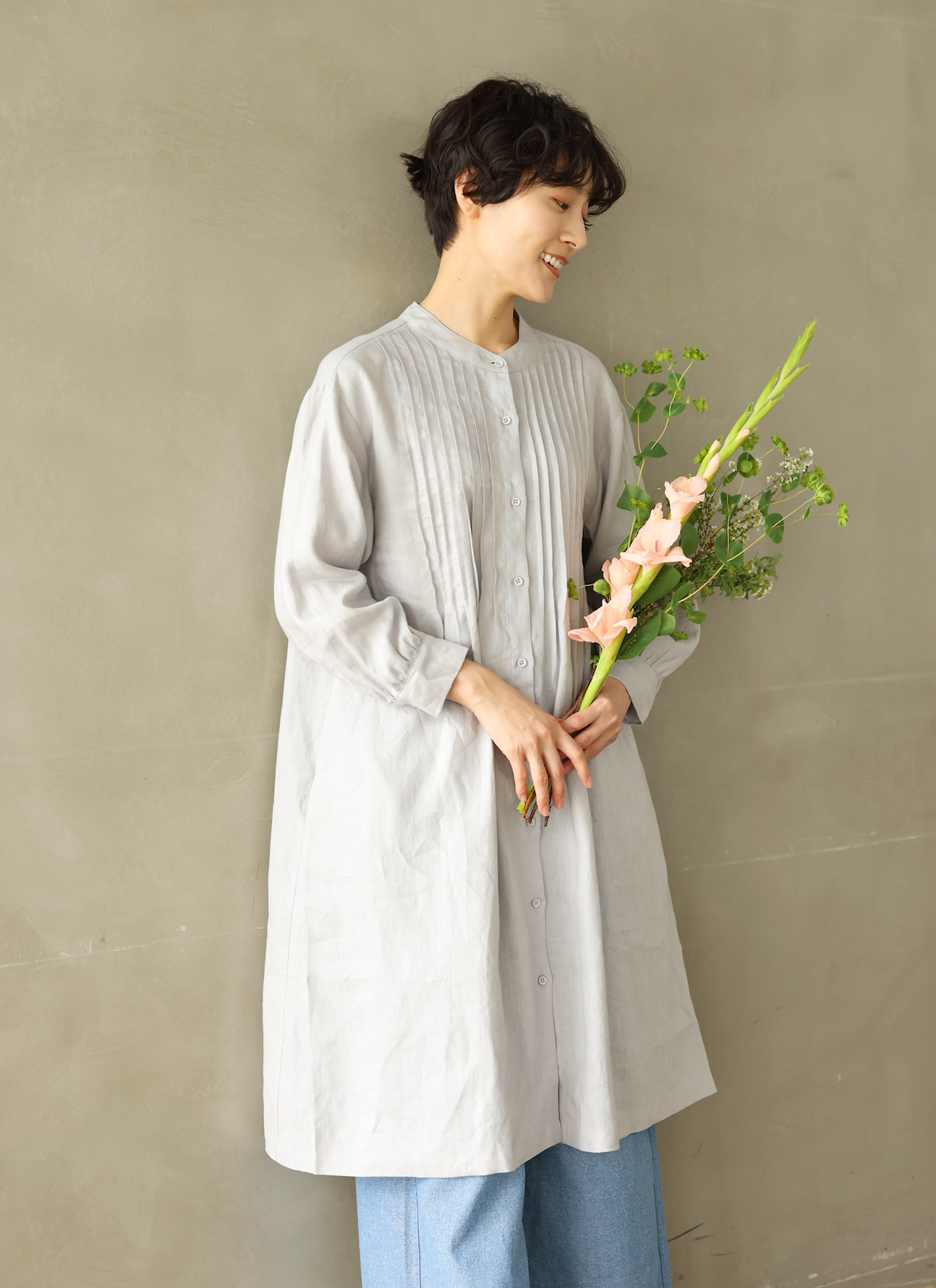 100% 亞麻襯衫裙,附針褶,適合所有季節 240318