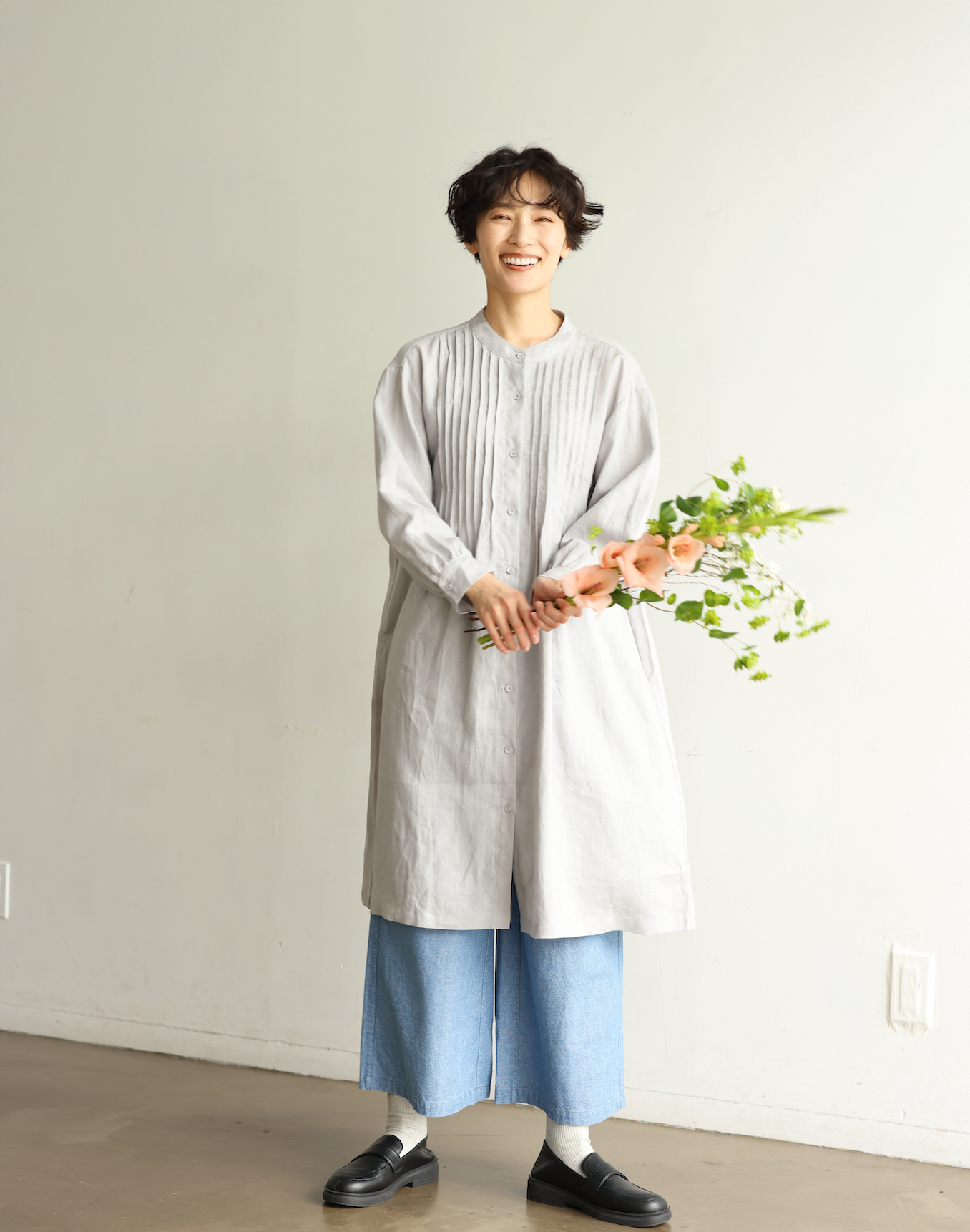 ★肩部的針褶被去除,優雅地縮小了體積,下擺飄逸,打造出可愛、成熟的輪廓。