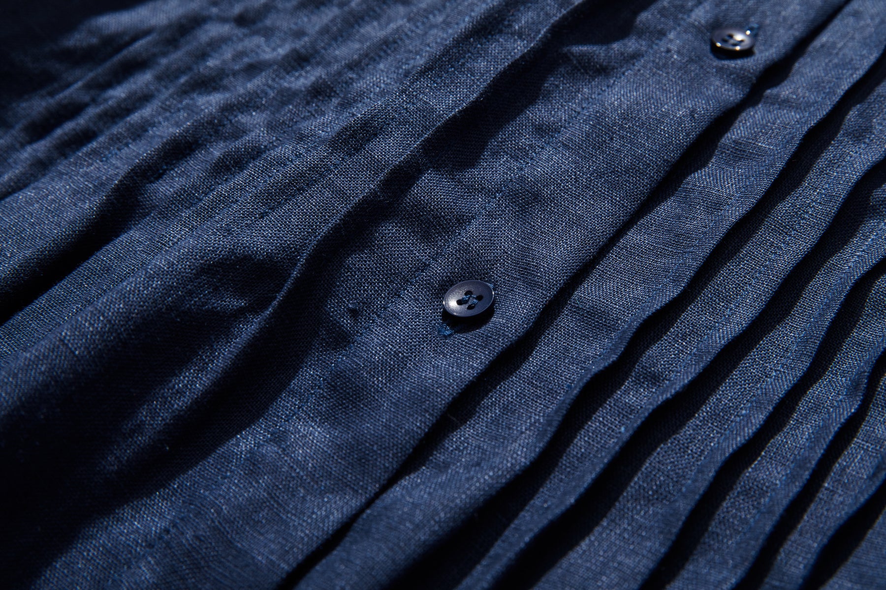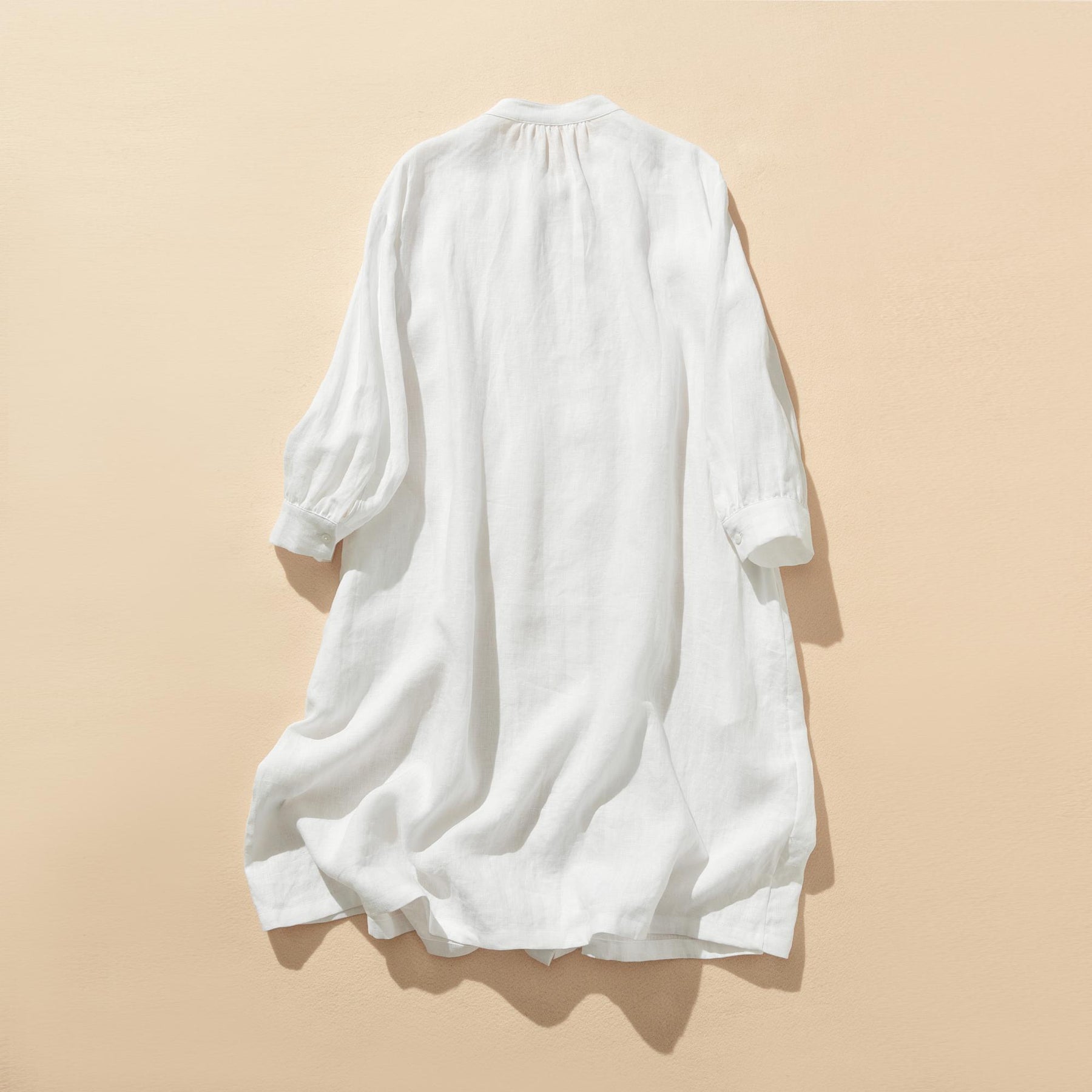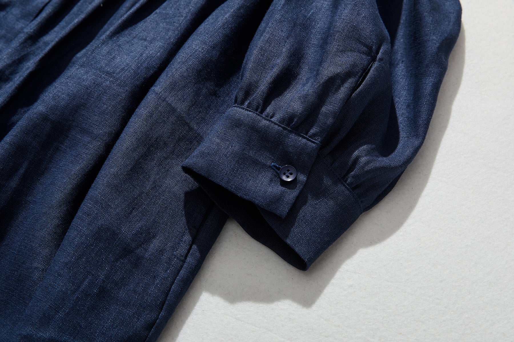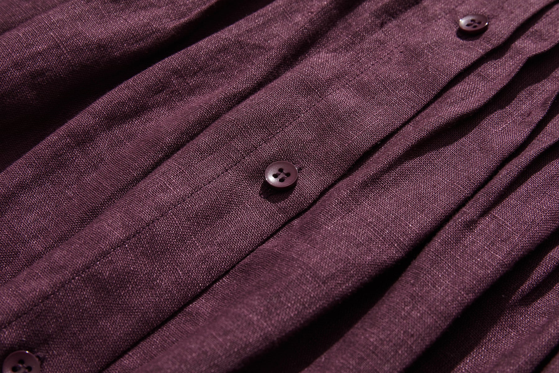 ★襯衫裙採用優質亞麻布料製成,觸感光滑。