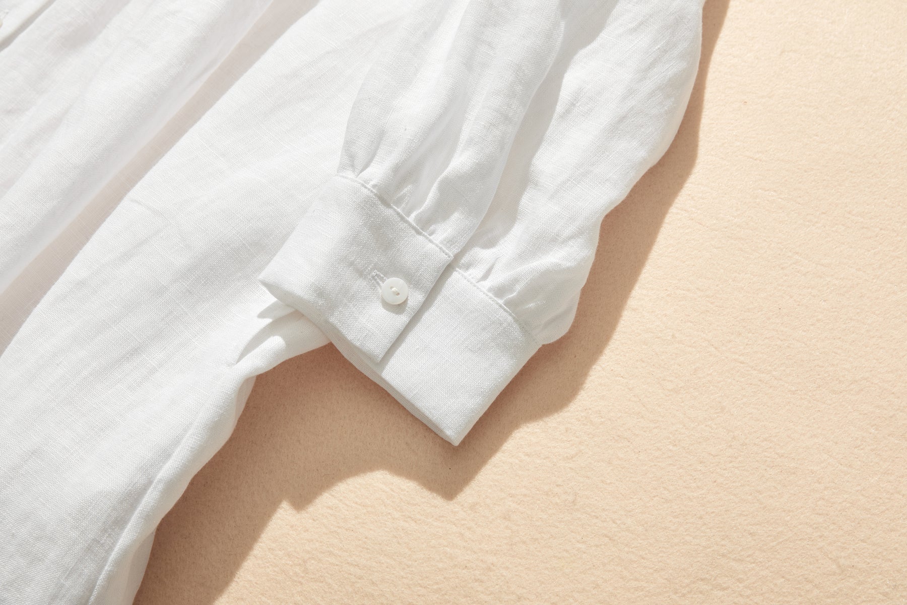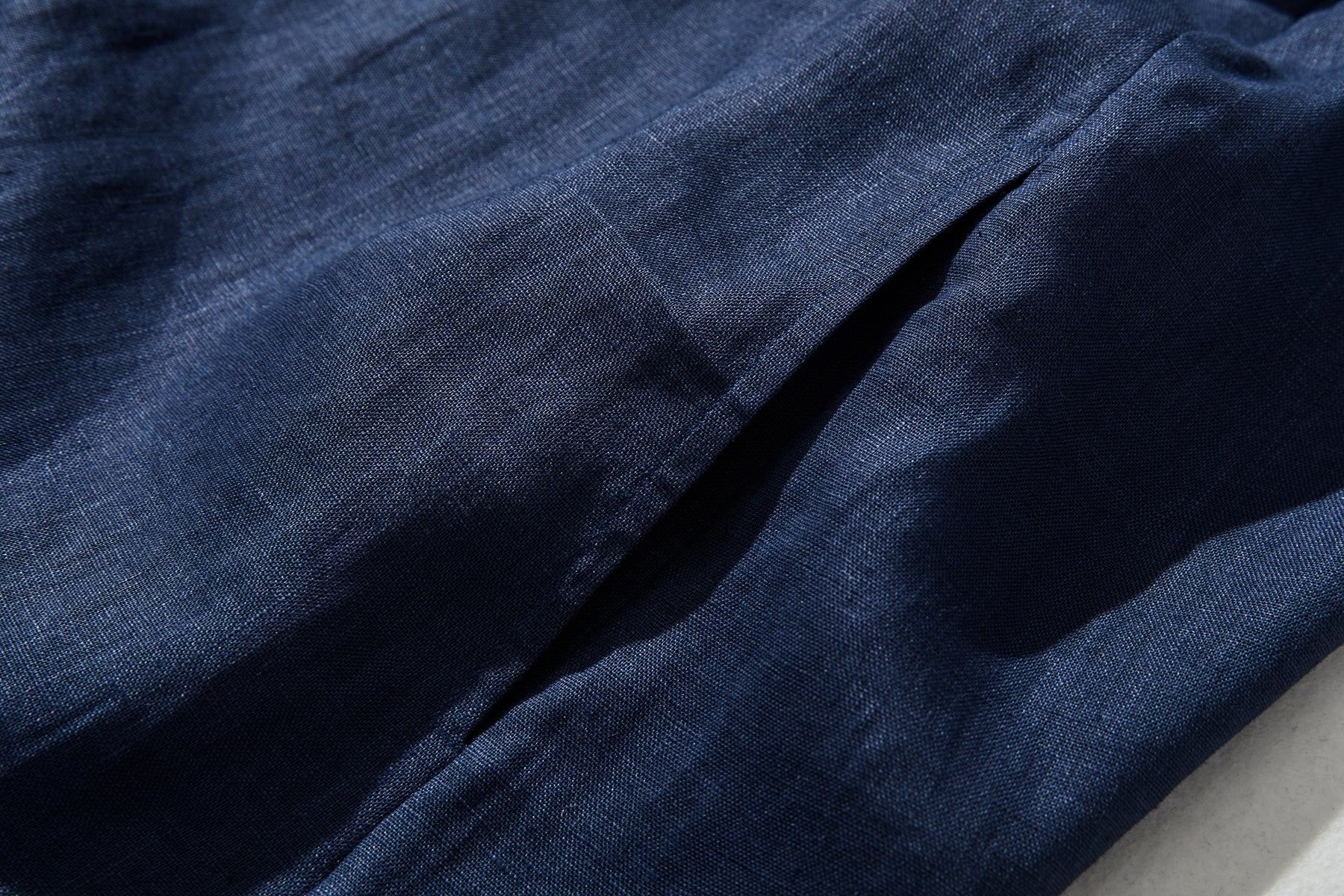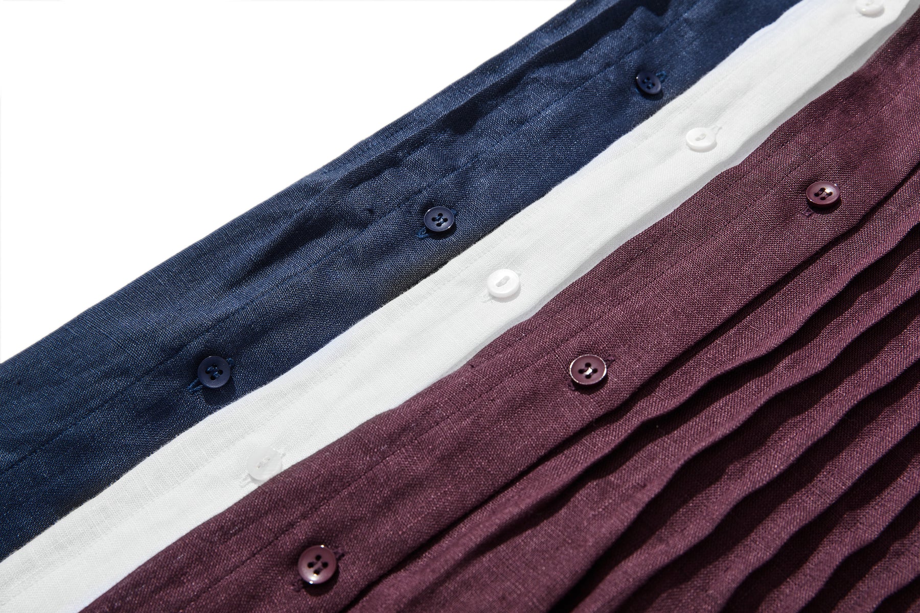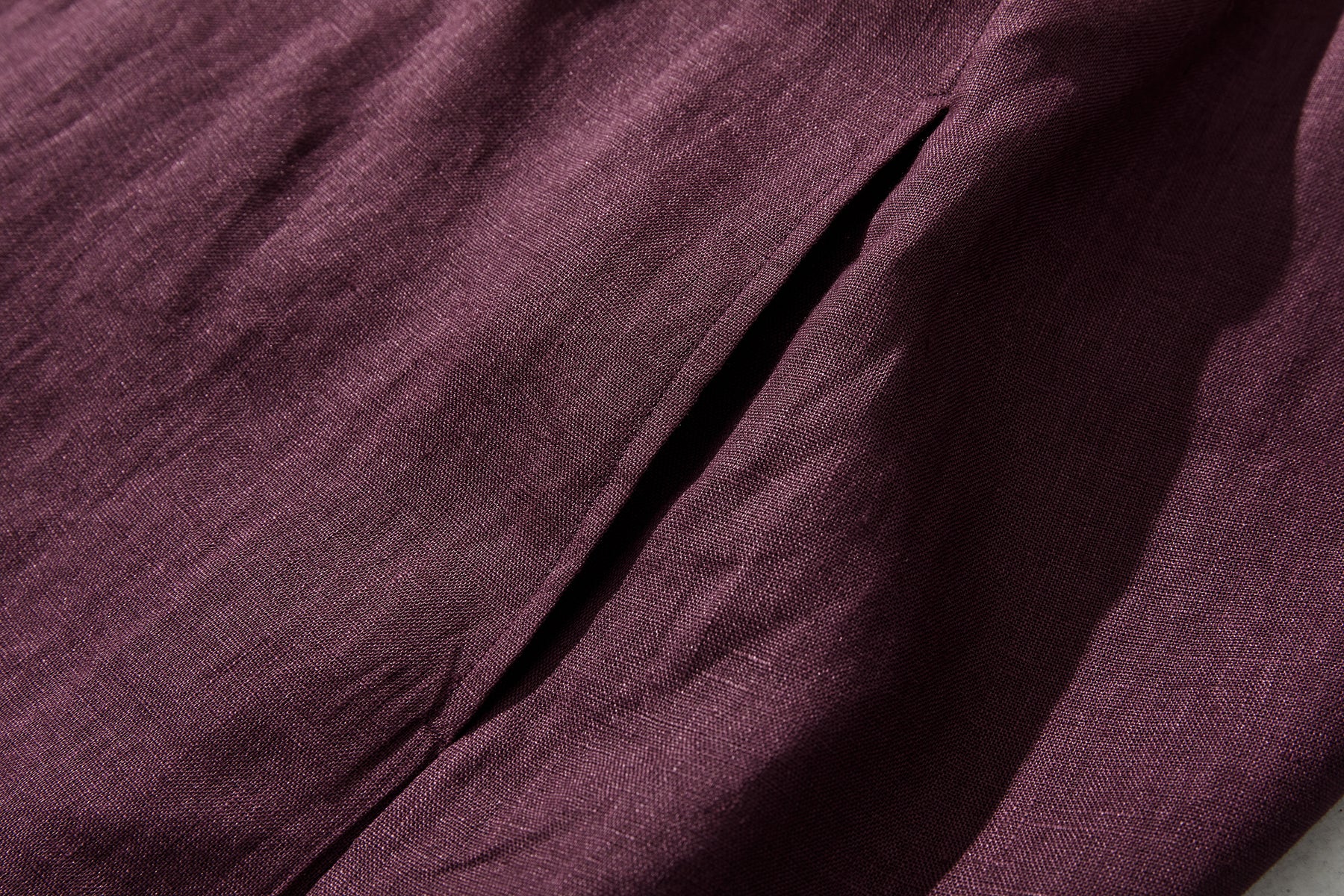 ★襯衫裙採用優質亞麻布料製成,觸感光滑。