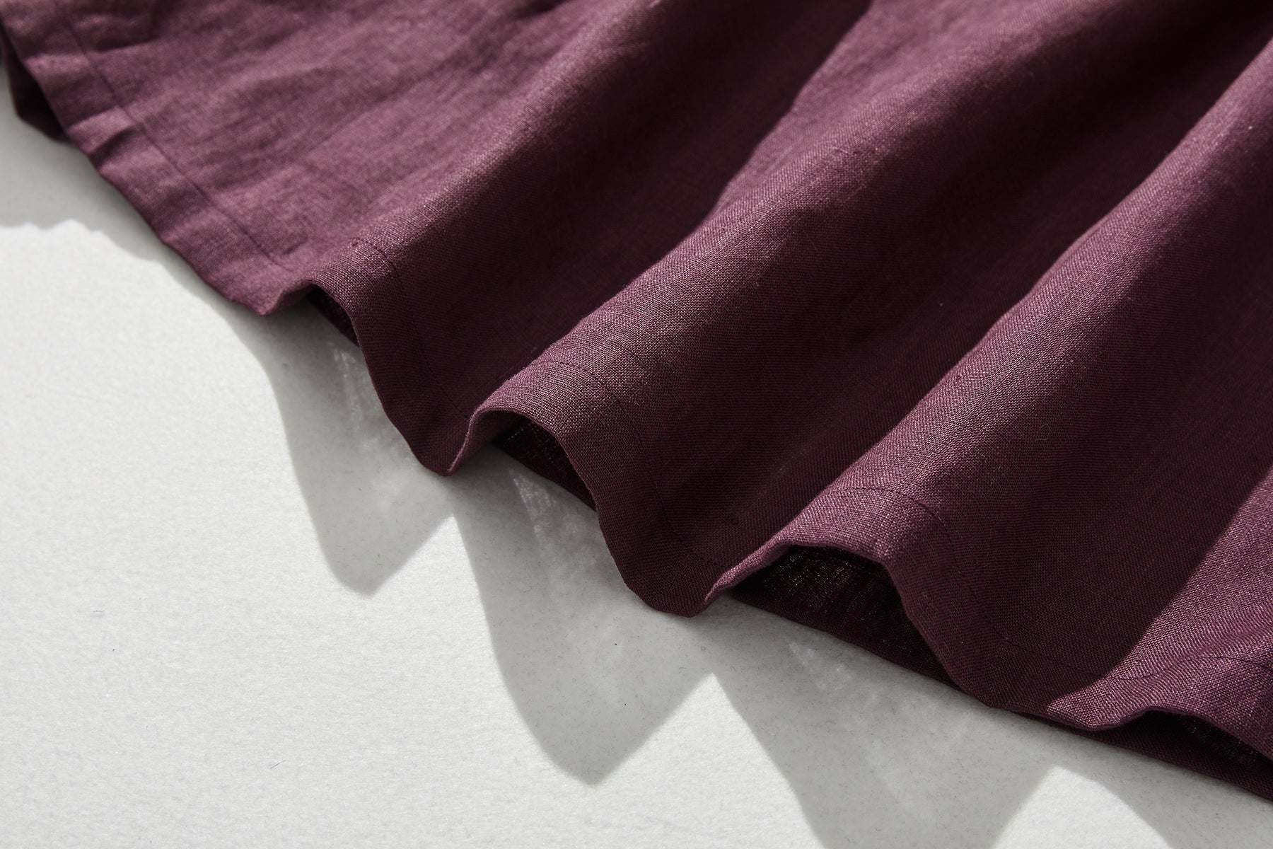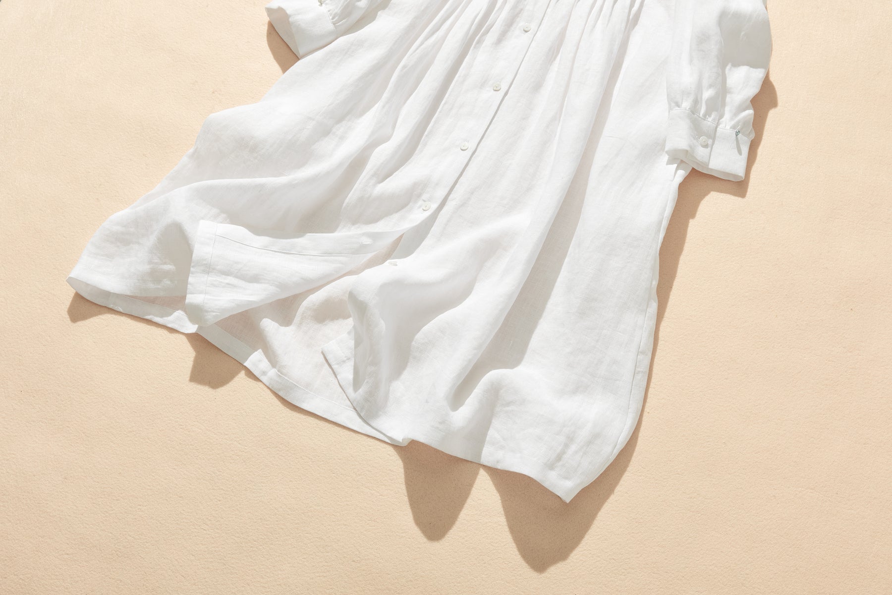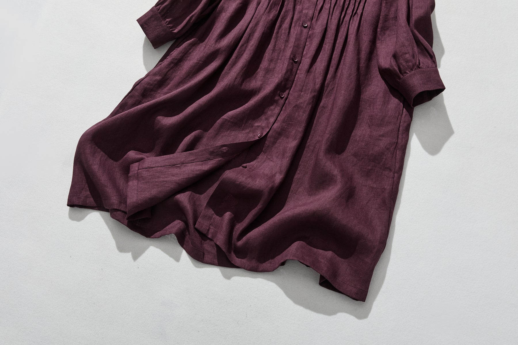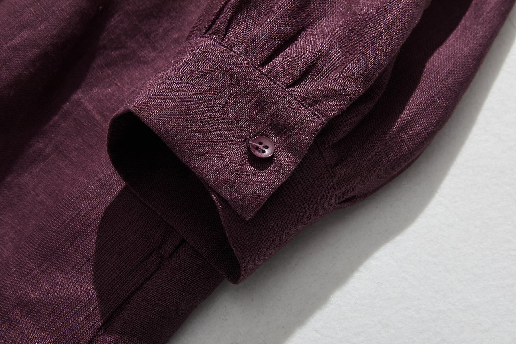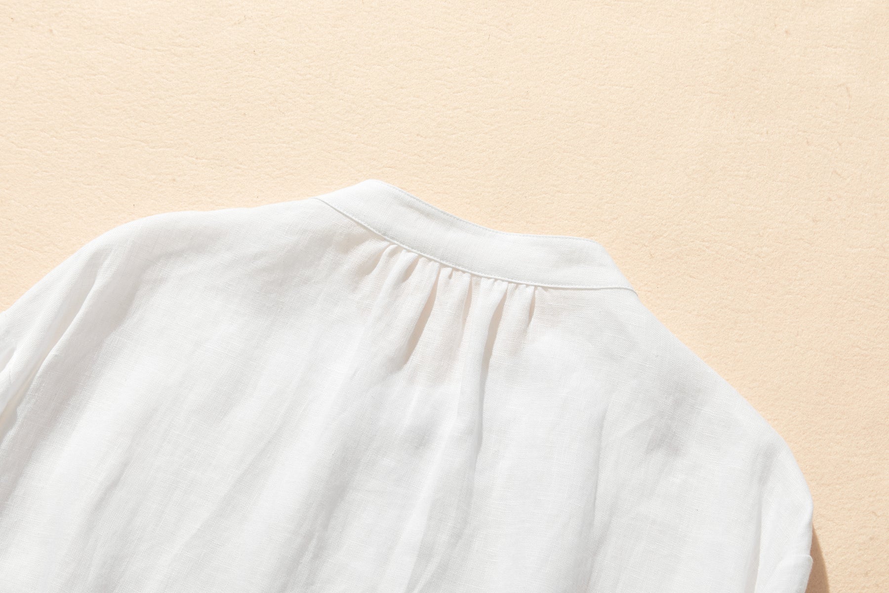 ★襯衫裙採用優質亞麻布料製成,觸感光滑。