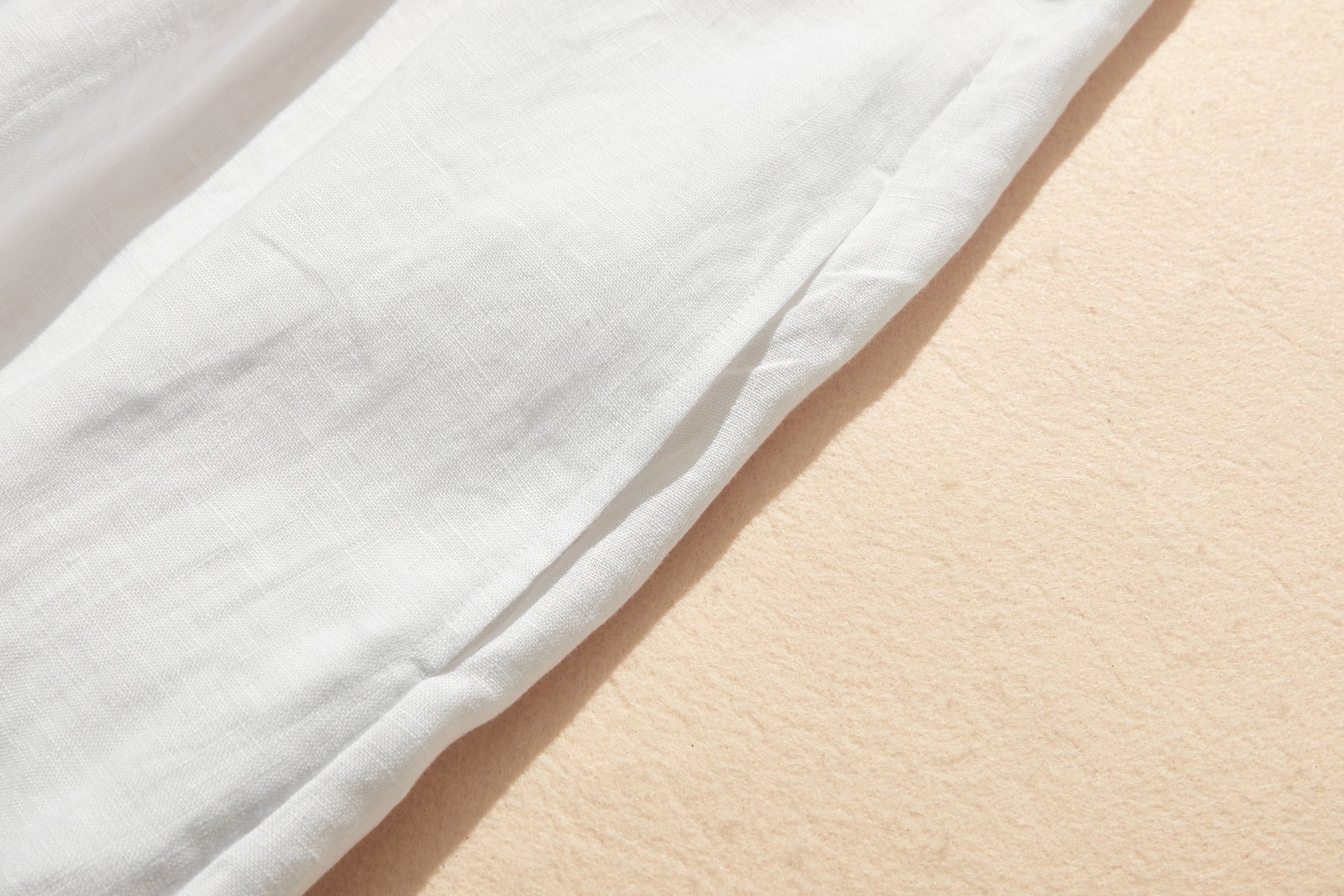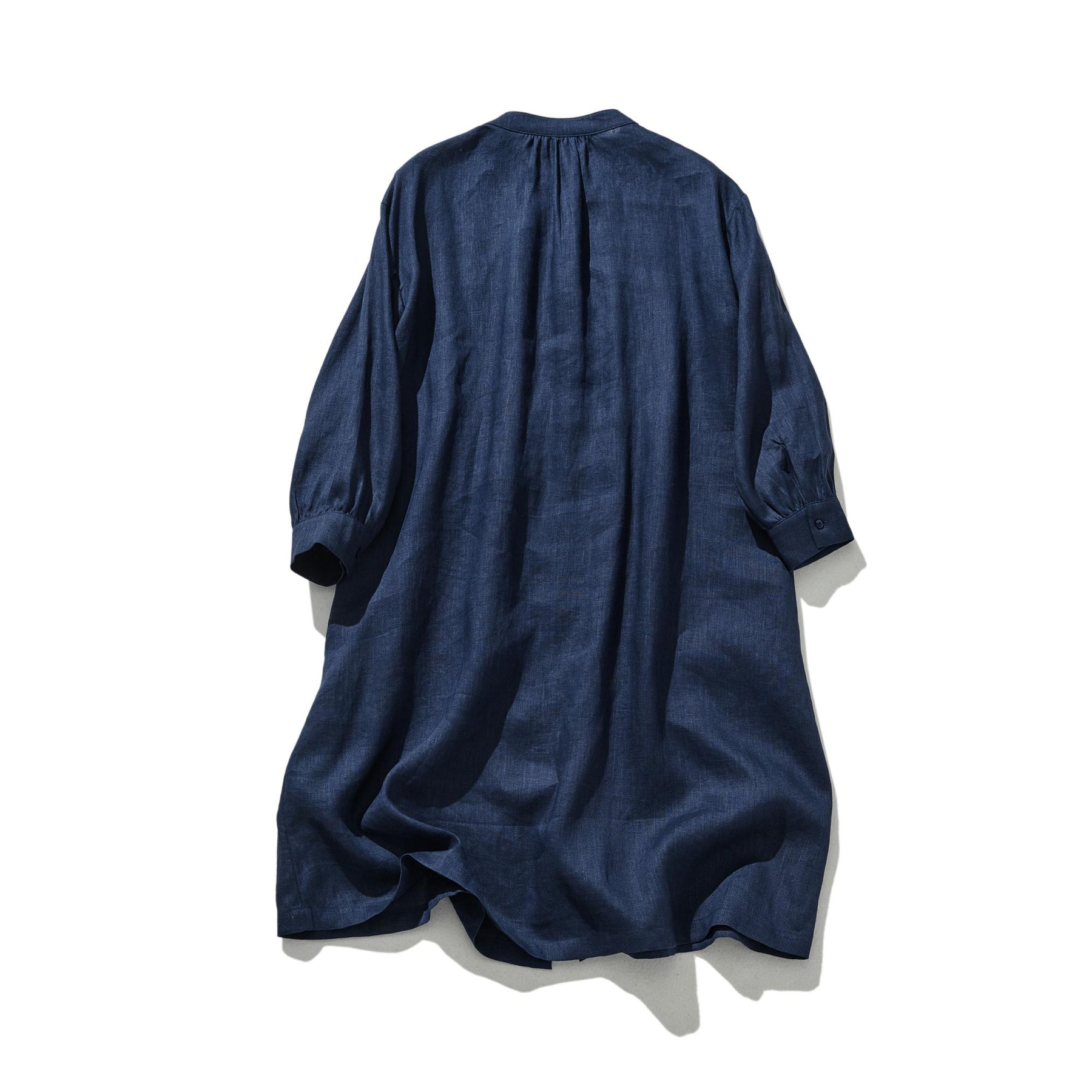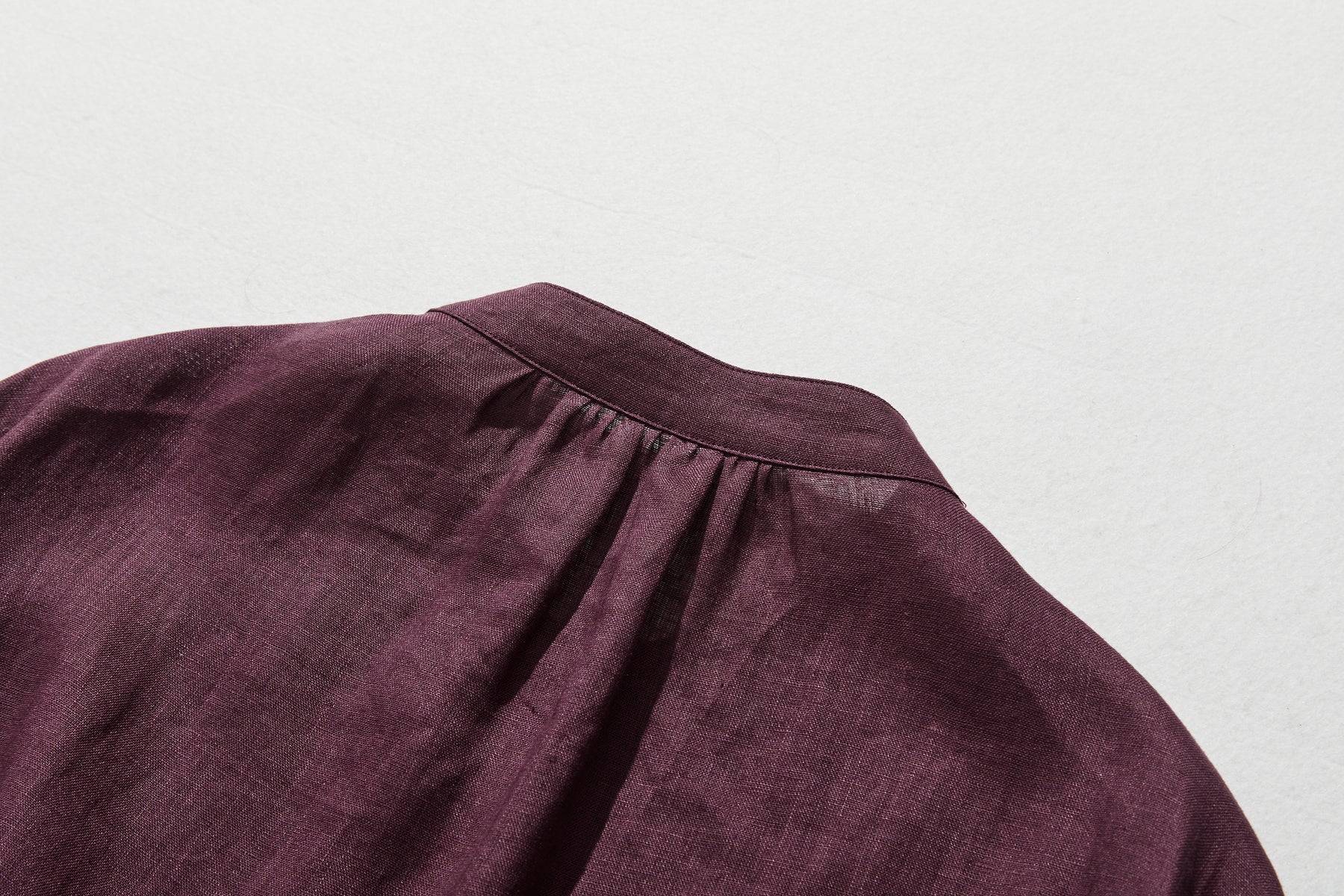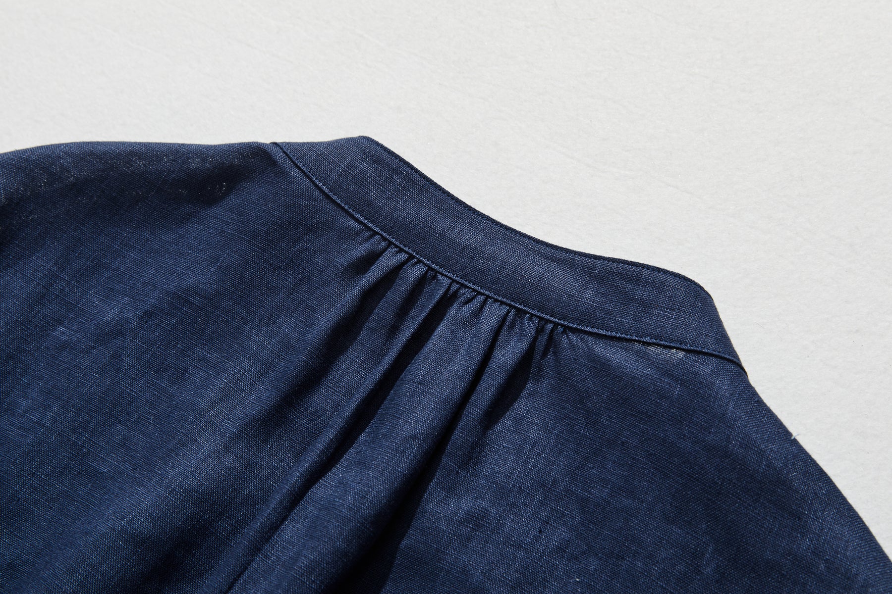★襯衫裙採用優質亞麻布料製成,觸感光滑。