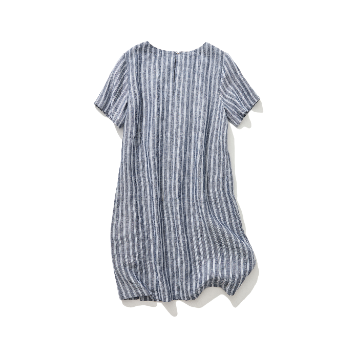 ★由優雅的條紋亞麻布製成的簡約連身裙,可一年四季穿著。