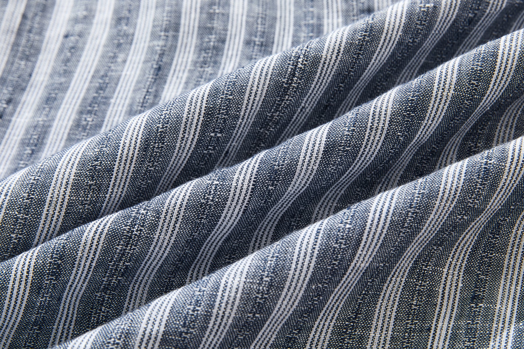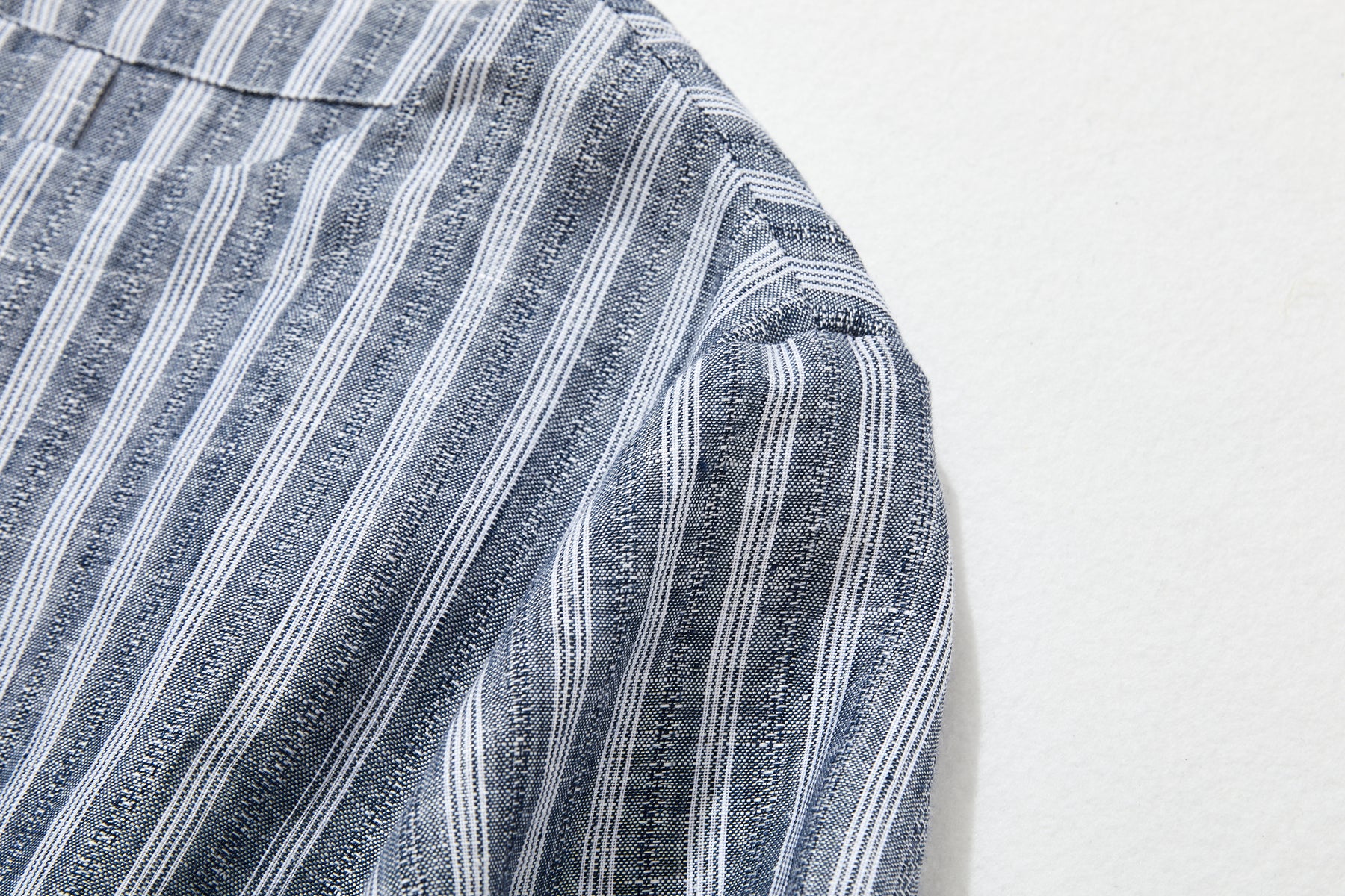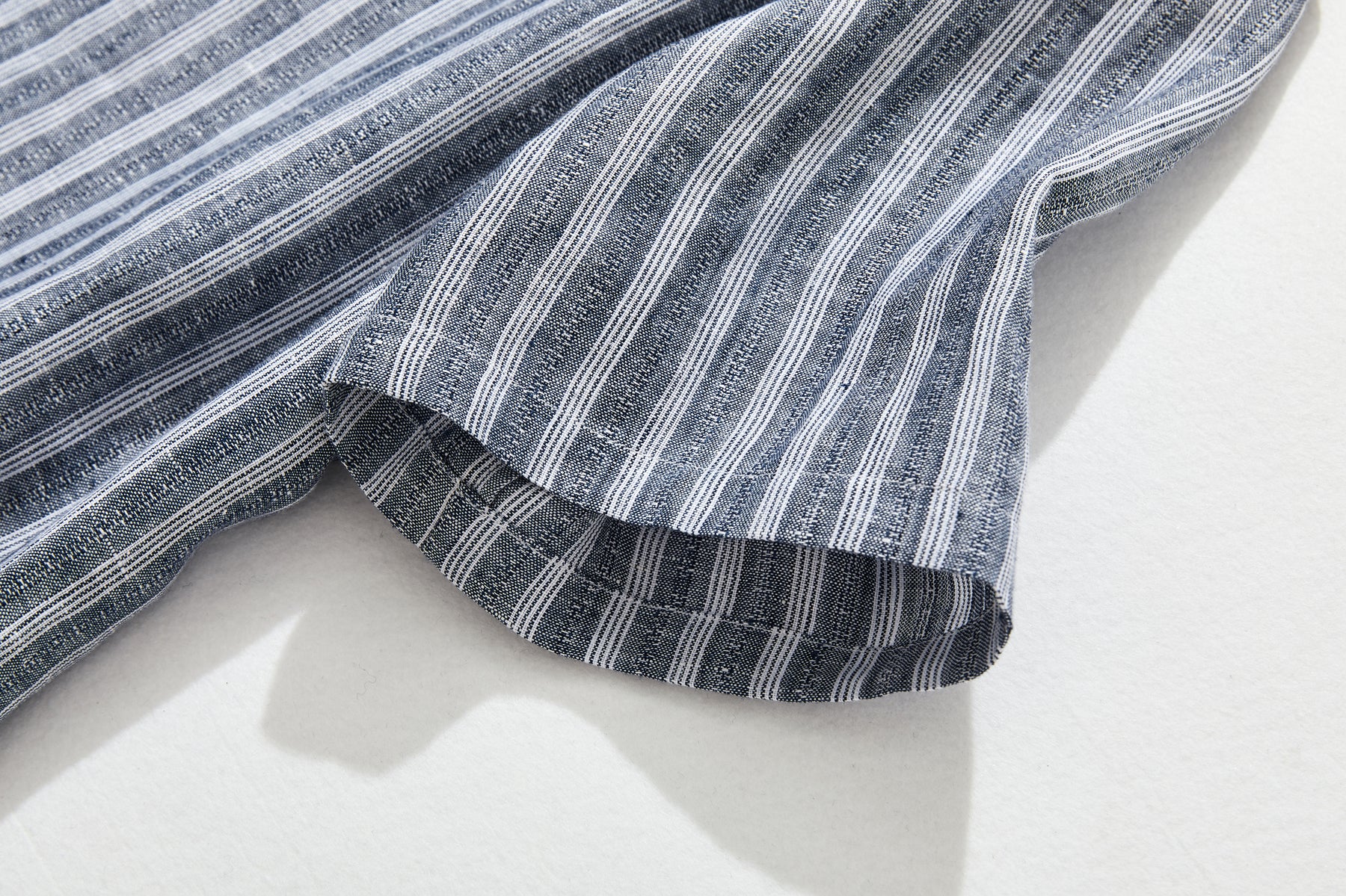 穿著方便又舒適! 100%亞麻條紋洋裝短袖230514-1