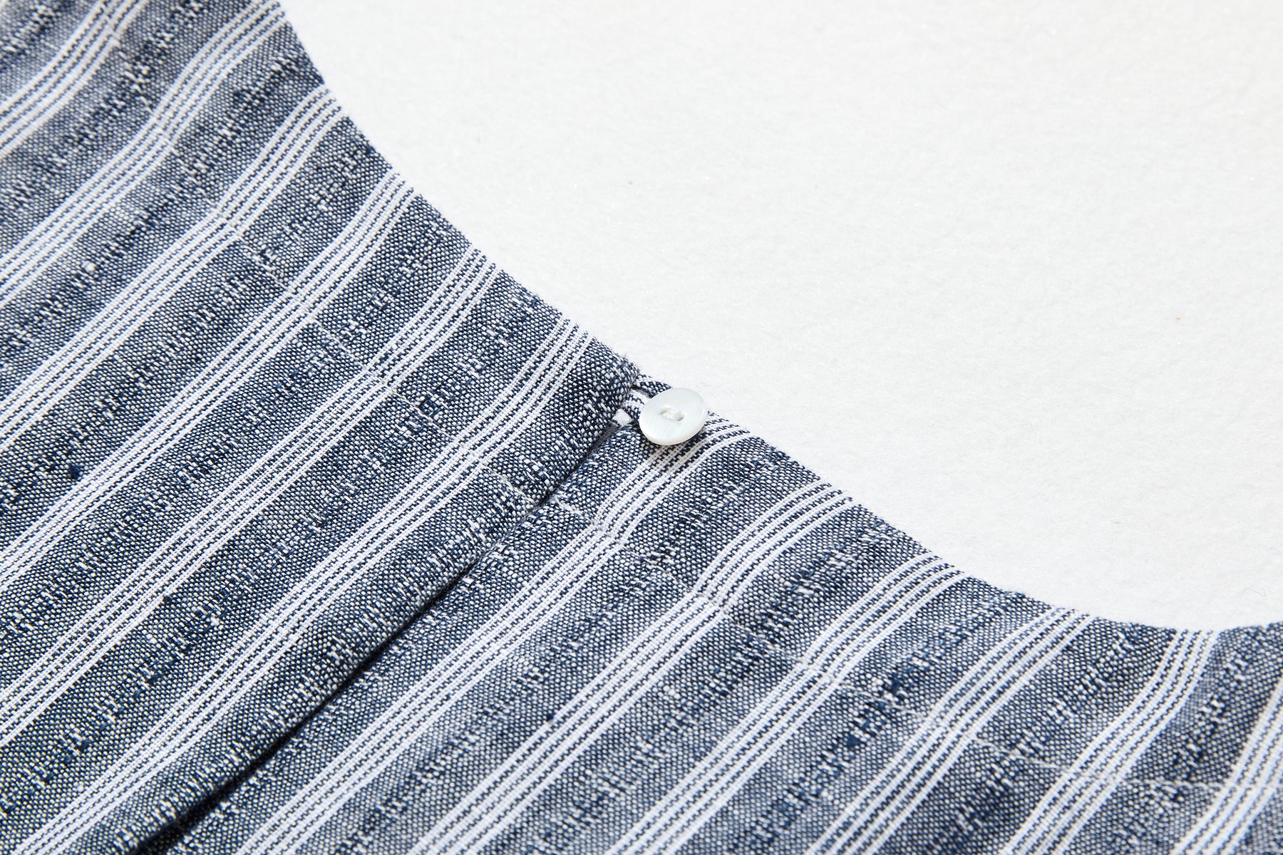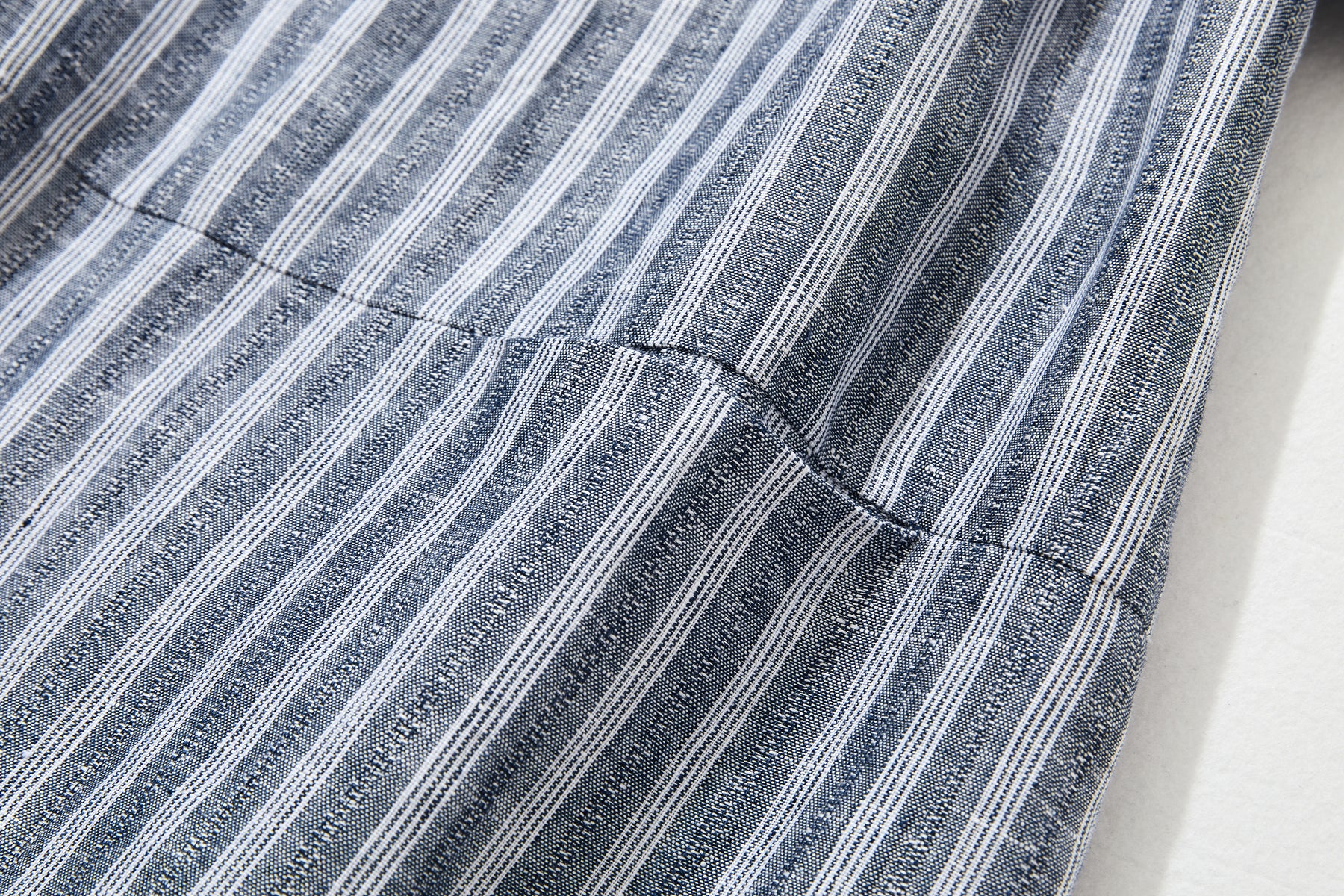 穿戴方便又舒適! 100%亞麻條紋連身裙,短袖 230514-1